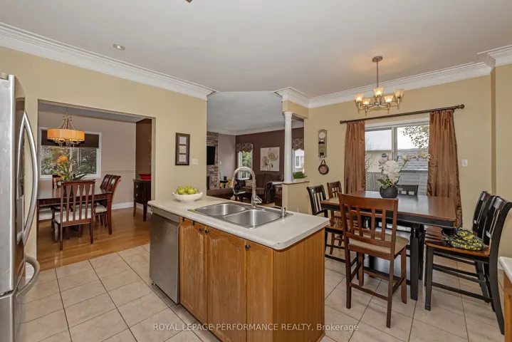 +"PublicRemarks": "Beautiful 4-bedroom, 4-bathroom home ideally located close to schools, shopping, and recreational facilities. This home features hardwood and ceramic tile flooring throughout, 9-foot ceilings, extensive pot lighting, and elegant crown moldings.The spacious kitchen and eating area open seamlessly to the family room, which boasts a stunning natural gas fireplace accented by a striking stone wall. The primary bedroom offers generous space, a large walk-in closet, and a full ensuite featuring a soaker tub and separate shower.The fully finished basement is complete with ceramic tile flooring, a full 4-piece bathroom, a large bedroom, a den, and ample storage space."
