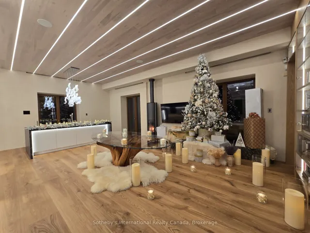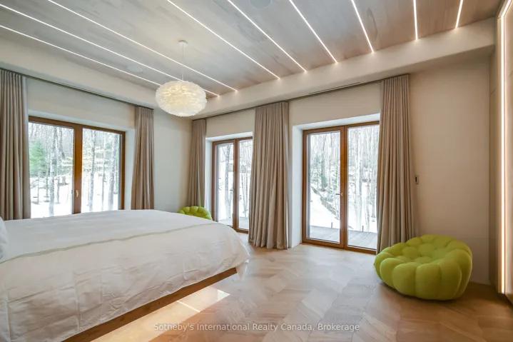 +"PublicRemarks": "Pure Luxury Retreat - Your Private Paradise in the Heart of the Canadian Wilderness. A one-of-a-kind luxury retreat and architectural marvel that truly feels like a house from 2050. Built to Net Zero Passive House standards, this estate spans approximately 9,500 sqft of custom-designed living space, plus over 9,000 sqft of decks encircling the home. It blends modern luxury with ecological stewardship and serene forest views. Featuring a private dock and deeded lake access, this property is a sanctuary for those seeking refined living and the possibility of complete independence.Crafted with European-sourced materials and exceptional craftsmanship, this home showcases a rare Eco Cocon straw wall system for superior insulation, Legalett radiant floor heating for consistent, draft-free warmth, and triple-pane European windows to optimize energy performance. Every detail is thoughtfully designed for comfort, wellness, and sustainability.The main floor offers an expansive open-concept great room with floor-to-ceiling windows, a gourmet kitchen, library, office, and a spacious primary suite with a spa-like ensuite. Upstairs, discover a versatile gym, cozy upper living area, wood-burning sauna, and an inviting swim-up spa with jacuzzi - an unparalleled wellness retreat. The lower level features a generous recreation room, rock-carved wine cellar, cold storage, and mechanical spaces.Natural materials throughout - including wide-plank natural wood floors, marble and granite finishes, and cross-laminated timber - create a serene, healthy environment. With a full-house Generac battery system, 400-foot well, and solar-ready infrastructure, this home is fully prepared for sustainable, self-sufficient living. There are simply too many upgrades to list - contact the listing agent for full details on this unique masterpiece, offered well below replacement cost."