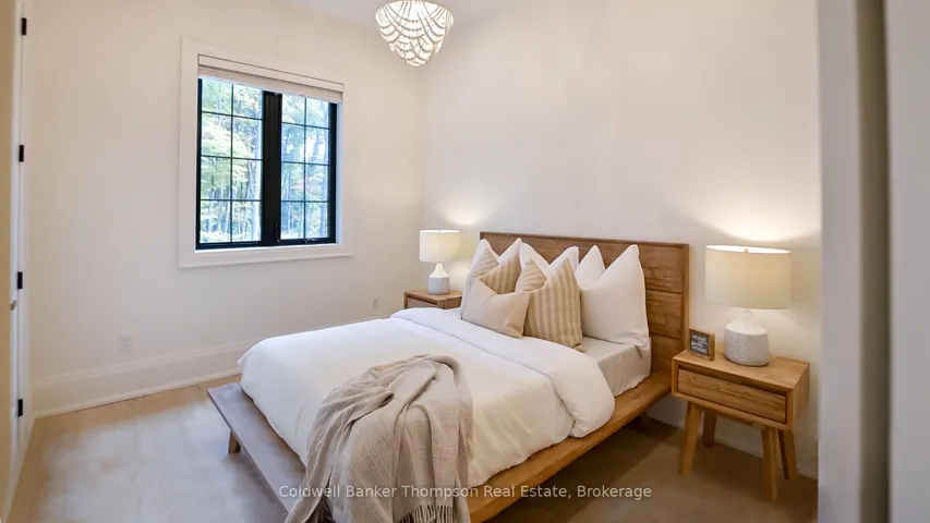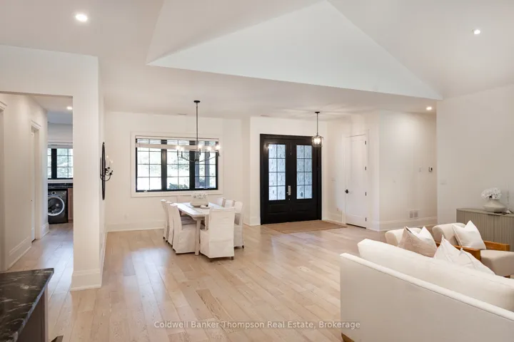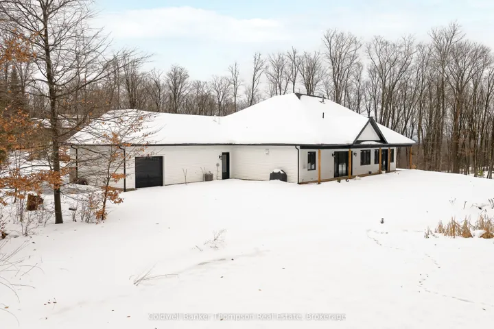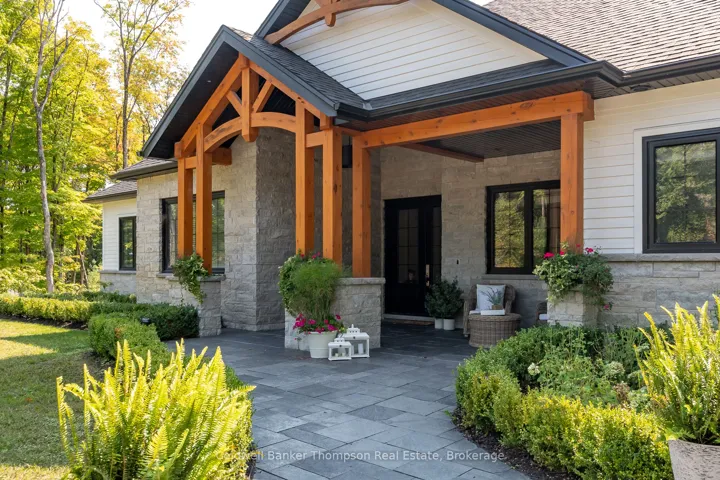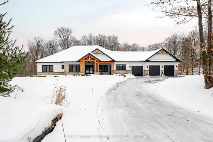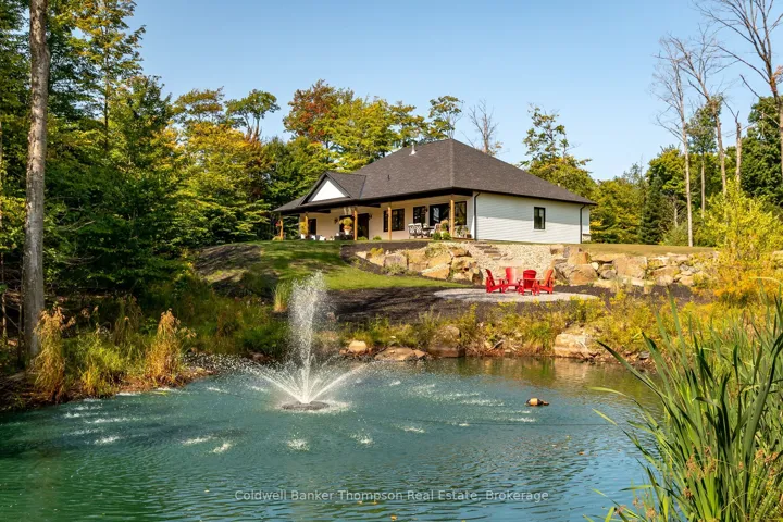+"PublicRemarks": "Welcome to this sprawling executive bungalow in the highly desirable Woodland Heights community. Here, thoughtful design, refined finishes, and serene surroundings create an exceptional home. Beautiful curb appeal sets the tone. The home opens into a spacious foyer that flows seamlessly into the open-concept living, dining, and kitchen areas. The living room is anchored by a striking propane fireplace. Pale oak hardwood flooring carries a warm, timeless feel throughout. The chef's kitchen is a true centerpiece. It features a huge island, integrated appliances with cabinet fronts, and a professional 6-burner propane stove. A well-planned servery offers abundant storage, a beverage fridge, and hidden prep space. This makes entertaining effortless. From the living room, sliding doors lead out to a covered deck with tranquil views of two ponds and the surrounding forest. This creates a perfect extension of the living space. Down the hall, discover four generously sized bedrooms, including a luxurious primary suite with a large walk-in closet. The spa-inspired 5-piece ensuite boasts a soaker tub, glass shower, double-sink vanity, private water closet, and heated floors. The three guest bedrooms share a beautiful 5-piece bath with double sinks, heated floors, and has ensuite privileges to one of the bedrooms. A stylish 2-piece powder room adds convenience. On the opposite side of the home, a spacious laundry area with a sink doubles as a mudroom with inside access from the triple car garage. This slab-on-grade home offers nearly 3,000 sq ft of thoughtfully designed living space with soaring ceilings and abundant natural light. The result is a modern yet welcoming atmosphere. Set on over two acres of land, there is ample parking and space to enjoy. The homes design and décor reflect a perfect balance of sophistication and comfort. This is a rare offering in an established community. The property blends executive living with the peace and beauty of Muskoka."