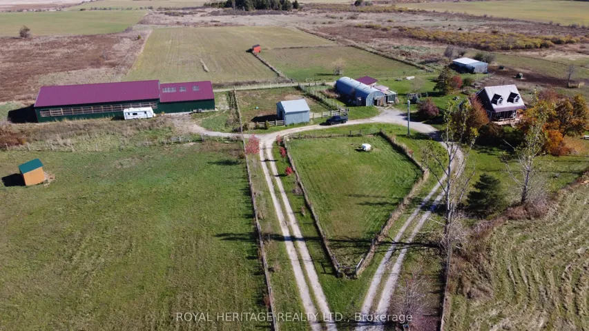 +"PublicRemarks": "Welcome to an exceptional 103-acre equestrian and agricultural property offering privacy, versatility, and income potential. A scenic tree-lined driveway leads to this peaceful countryside setting, surrounded by expansive open fields ideal for horses, cattle, sheep, or mixed livestock. The property is well equipped for equestrian use with a brand-new three-stall stable featuring 12' x 12' stalls and a concrete walkway, with capacity to add additional stalls. A 60' x 100' arena built in 2022 offers excellent space for riding, training, and lessons, while also providing outstanding flexibility for agricultural use. The arena is well suited for livestock handling, winter feeding, lambing or calving, equipment storage, or other multi-purpose farm uses. Multiple paddocks with electric fencing and three run-in shelters support efficient grazing and herd management. The acreage offers strong potential for rotational grazing, with approximately 30 acres already in hay production, supporting scalable livestock operations while maintaining a premium equestrian setup. The upgraded log home blends rustic charm with modern comfort, featuring an open-concept eat-in kitchen with granite countertops, island, and walkout to a deck overlooking gardens and fields. The dining room includes a propane fireplace and large picture windows. The primary bedroom offers a three-piece ensuite and two additional bedrooms. The lower level features a separate entrance, family room, and potential bedroom, ideal for an in-law suite or added living space. A rare opportunity to own a versatile farm combining equestrian and livestock potential with peaceful country living."