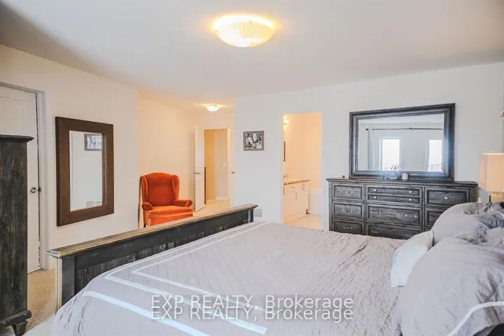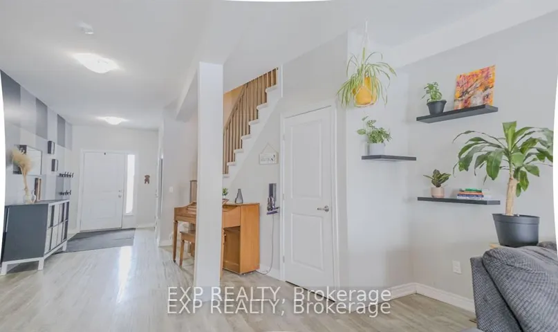 +"PublicRemarks": "Welcome to this beautifully upgraded executive townhome. Located in a highly sought-after community just minutes from Highways 403 and 407, and steps from shopping, dining, and everyday conveniences. This spacious 3-storey home boasts upgraded hardwood flooring on the main level and a solid oak staircase. The bright and open second level features a sleek kitchen with stainless steel appliances, quartz countertops and upgraded backsplash and light fixtures. The kitchen flows seamlessly into the dining and living area which boasts a stunning stone feature wall. Step out onto the balcony for a perfect extension of your living space. Upstairs you'll find two bedrooms, with the primary bedroom offering a closet and a private 3-piece ensuite. The home offers an expansive rooftop terrace an entertainers dream with sweeping views. The ground level features a dedicated laundry area, interior entry from the garage, and additional storage space."