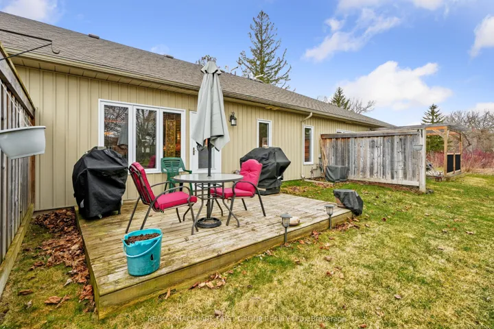 +"PublicRemarks": "Enjoy low-maintenance living in this thoughtfully designed one-level townhouse. The inviting open-concept living room and kitchen create a well-laid-out living space with a walkout to the backyard. The eat-in kitchen offers ample cabinet space and built-in appliances, perfect for daily meals and entertaining. The primary bedroom features a walk-in closet and a full bathroom, offering a private retreat. Guest bedroom, convenient main-floor laundry and direct access to the attached garage add everyday functionality. Step outside to a charming back garden with a deck and green space, ideal for relaxing or enjoying warm-weather evenings. Located steps from a park and baseball diamond, with quick access to amenities and Highway 2 and the 401, this is an ideal place to start your carefree Northumberland lifestyle."