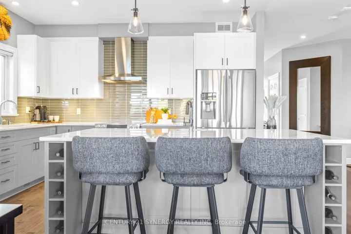 +"PublicRemarks": "This impressive luxury bungalow offers exceptional design, high-end finishes, and an ideal location in Cardinal Creek backing onto peaceful green space and a scenic bike path. The exterior features an interlock walkway, covered front veranda, and landscaped grounds that enhance curb appeal. Inside, a spacious front foyer with subway tile flooring opens to 9' flat ceilings and an elegant open-concept layout. The chef's kitchen is the heart of the home, showcasing an oversized center island with breakfast bar, quartz countertops, two-tone cabinetry, a wine rack, and a deep 24" pantry. The recessed sink beneath a window provides backyard views, while the horizontal tile backsplash and modern lighting complete the look. The adjoining dining area offers access to an elevated balcony, perfect for outdoor dining or relaxing with a view. The living room is bright and welcoming, featuring hardwood flooring, high baseboards, wrap-around windows with a curved transom, cathedral ceiling, and a gas fireplace with tiled hearth. The rear primary bedroom includes a double-sided walk-in closet and a 4-piece ensuite with glass shower, stand-alone tub, and quartz vanity. A second bedroom or office with glass door, a 3-piece bath, and convenient main floor laundry complete the main level.The walk-out lower level is fully finished with 9' ceilings, pot lighting, and a spacious recreation room with patio access. Two additional bedrooms, a full 3-piece bath, and storage areas provide excellent flexibility for guests or family. The fenced backyard is beautifully landscaped and designed for relaxation and entertainment, gazebo, patio, putting green, and storage shed. Located close to walking trails and a short 15 minute walk to new LRT station, this property combines luxury, comfort, and convenience in one exceptional package."