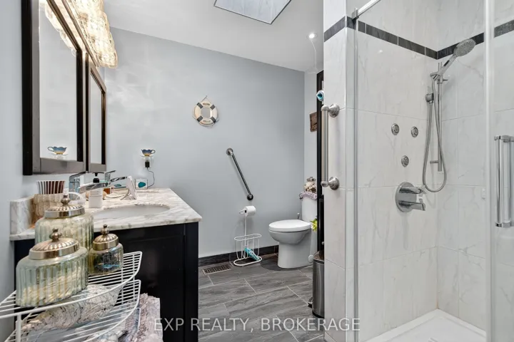 +"PublicRemarks": "Welcome to 63 Southwood Crescent in beautiful Napanee! This all brick elevated bungalow has been lovingly cared for by the same family for over 30 years and it shows in every detail. Step inside to find gleaming hardwood floors, a bright and inviting layout, and a renovated main bathroom featuring a skylight, walk-in shower, and heated floors for that extra comfort. The main level includes three spacious bedrooms, with the primary suite offering direct access to a private deck overlooking your peaceful backyard retreat.The fully finished basement provides even more living space, complete with a cozy natural"