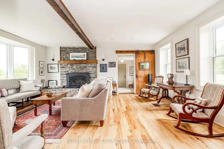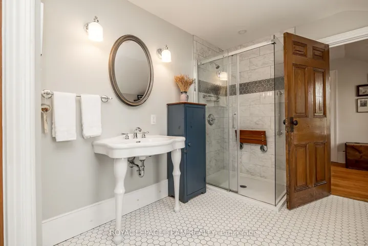 +"PublicRemarks": "Welcome to Spillway Farm, circa 1835, a stunning waterfront stone home w/ exquisite custom renovations by Hubbard & Co! Located along the Rideau System, UNESCO World Heritage site, this breathtaking waterfront home offers a rare blend of preservation of historic allure w/contemporary convenience & design. Featuring 4 bedrooms + den, 3 full bathrooms & many elegant rooms for entertaining, this home is filled with natural light accentuating its inherent warmth & rich heritage. The custom kitchen w/waterfront view & exposed stone wall showcases luxury cabinetry, granite countertops, an island w/seating, refurbished wood floors & a pantry w/artistic coffee bar! The kitchen leads seamlessly to the elegant dining room w/deep window sills, wide baseboards & refurbished flooring, or to the majestic living room w/stone fireplace, wood hewn mantle & exceptional waterfront views! A side entrance w/inside entry to a garage w/additional loft storage space is conveniently adjacent a full bath/laundry room w/exposed stone wall, farmhouse drop sink & ample cupboard/counter space for laundry area. An office/den off the rear entry deck offers water views, deep window sills & refurbished original floors. The spacious second level showcases 4 bedrooms, one presently utilized as an office, a main bath w/sliding wood door, ample closet & storage space, deep window sills & refurbished floors. The primary bedroom leads to a gorgeous 4-piece ensuite bathroom w/penny round flooring, tiled shower, & a claw tub w/waterfront view! Landscaped w/stunning perennials, rose bushes, numerous tree varieties & a flag stone entry w/full concrete driveway. Rear tiered deck & porch offer many spaces for entertaining; aesthetic stairs lead to expansive dock for unparalleled sunset views! Spillway Farm is a paradise where you can watch loons, osprey, blue herons or traverse the spectacular Rideau waterway via boat from your Fendock; this tranquil waterfront oasis in a historic community awaits!"