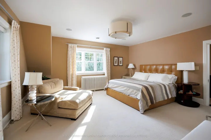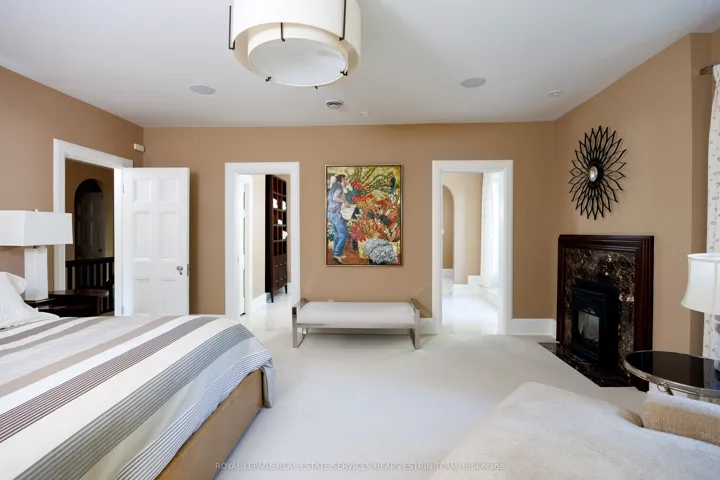 +"PublicRemarks": "Nestled behind private gates on one of Oakville's most coveted "Street of Dreams," this exceptional estate sits on a spectacular 100 x 225 ft lot and offers over 7,500 sq ft of luxurious finished living space. Surrounded by manicured gardens and mature trees, the home blends timeless architecture with sophisticated, on-trend finishes and commanding curb appeal. A grand double-height foyer introduces an elegant interior designed for refined living and effortless entertaining. The main level features a chef-inspired kitchen with custom cabinetry, seamlessly open to a spacious family room. A private office, formal living room, piano lounge, and a stunning three-season Muskoka room extend the living space into the tranquil backyard. Upstairs, the luxurious principal retreat showcases a sleek linear gas fireplace, dual spa-inspired ensuites, separate walk-in closets, and a boutique-style dressing room, with a private balcony overlooking the Muskoka-like setting. Three additional bedrooms each offer private ensuites and generous custom closets for ultimate comfort and privacy. The fully finished lower level-accessible by both the main staircase and a unique main-floor slide-offers expansive recreation and games areas, a gym, fifth bedroom, full bath, and abundant storage. Two laundry rooms provide exceptional convenience for modern family living.Since 2025, the owner has invested significantly in premium upgrades, including enhancements to the kitchen cabinetry, custom closet built-ins, lower-level laundry room, fireplaces in the living and family rooms, window treatments, appliances, primary dressing area, and multiple bathrooms-further elevating the home's quality and turnkey appeal. A rare opportunity to own a gated estate of scale, elegance, and enduring value in prestigious S.E Oakville."
