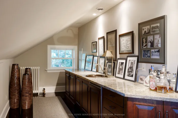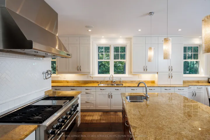 +"PublicRemarks": "A landmark estate in St. George's Park. Privately set on one of Guelph's most prestigious streets, 75 Queen Street is a legacy residence of rare scale and architectural significance. This fully reimagined Dutch Colonial estate sits elevated on an 89 x 264-foot lot, surrounded by professionally designed grounds that have been meticulously cultivated and maintained for over 25 years. The exterior offers resort-quality living, with a saltwater pool, wood-burning fireplace, outdoor shower, and dedicated pool bathroom, framed by mature trees and layered stonework. The sense of privacy and serenity is immediate. Inside, the home spans over 5,700 square feet of finished space and follows a classic centre-hall plan with gracious flow and custom detail throughout. The main level includes a grand great room, formal dining room, glass-enclosed sunroom, chef's kitchen with granite surfaces and premium appliances, and a private office. Upstairs, the primary suite features two fireplaces, a walk-in closet, a five-piece ensuite, and a private balcony with hot tub. The third floor offers additional bedrooms, a large family room with wet bar, and elevated views of the gardens and city skyline. The fully finished lower level includes radiant heated floors, a home theatre, cigar lounge with ventilation, wine cellar, kitchenette, and full laundry. A detached garage and separate outbuilding provide parking for four vehicles, a sauna, a full bath, and two upper lofts that are ideal for guest accommodation, a studio, or a wellness retreat. In total, there is parking for 14 vehicles. All buildings are security-monitored and equipped with heat sensors, ensuring peace of mind and enhanced safety throughout the estate. Just steps to St. George's Park and within walking distance to downtown, the GO Station, and top schools, this property presents a rare opportunity to own one of Guelph's most iconic estates. Timeless, private, and built without compromise."