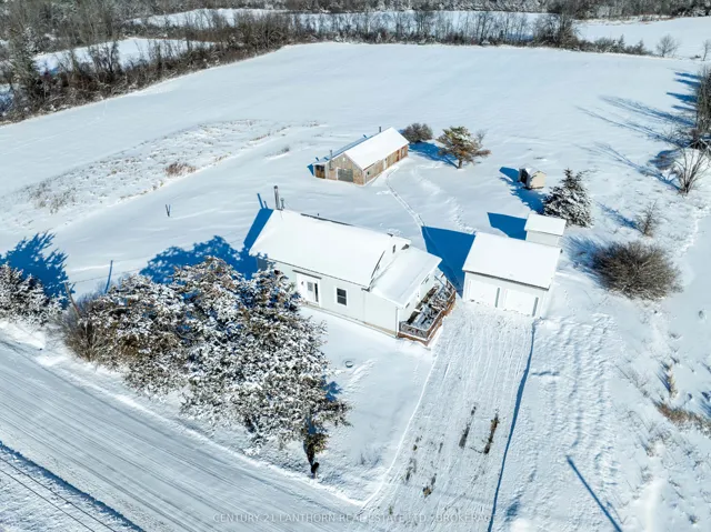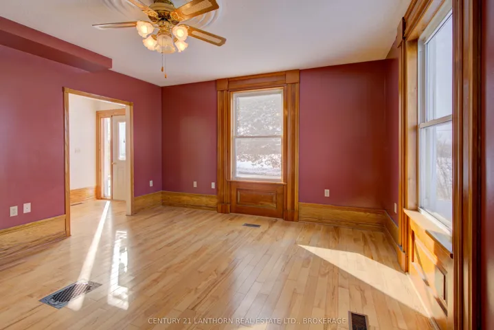 +"PublicRemarks": "Impeccable condition for its 200-year age! This charming rural home near Odessa has undergone numerous updates while preserving much of its original woodwork and window framing. It features a spacious eat-in kitchen with ample counter and cupboard space, a separate dining room, and a generous living room with hardwood floors. The main level also includes a laundry area and a four-piece bathroom. Upstairs, you'll find a massive primary bedroom, two additional well-sized bedrooms, and a large hallway with ample closet space. The dry, insulated basement offers plenty of storage. Updates include wood & propane furnaces, air cleaner, water treatment system, thermal windows finished and much more. Outside, the property includes a detached double garage with an upper level, two garden sheds, and a sizable workshop-perfect for hobbies or extra storage. All of this sits on approximately 3 acres, with convenient access to nearby city centers."