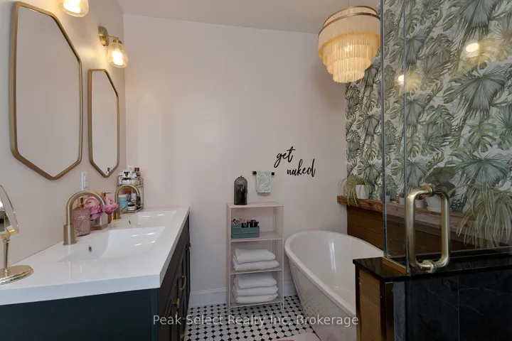 +"PublicRemarks": "This beautifully restored century brick cottage blends timeless 1880s character with over $200,000 in thoughtful modern renovations. Set on a mature, deep 48.5 x 150 ft lot, the home offers curb appeal, functionality, and peace of mind with extensive upgrades completed in recent years. Inside, the home has been completely reimagined. The open-concept main floor features walls removed to create a bright, flowing layout with all-new luxury vinyl plank flooring throughout. The fully renovated kitchen is a standout, offering quartz countertops, a large island, farmhouse apron sink, pot filler, pantry, new appliances, stylish backsplash, and updated lighting. The main floor also includes a powder room, a generous primary bedroom with walk-in closet, and a luxurious ensuite featuring a standalone tub, custom glass shower, and double-sink vanity. A custom gas fireplace with built-in shelving anchors the living space, while ductless air conditioning and all-new light fixtures add comfort and polish. The second floor, formerly unfinished attic space, has been transformed into a functional living area with two bedrooms and a full bathroom. The floor was lowered to create proper ceiling height, including a bedroom with walk-in closet and skylights. Additional highlights include new carpeting, tiled bathroom floors, a 3-piece bath with tub/shower, radiant baseboard boiler heating with thermostat, and a ductless air-conditioning wall unit. Outside, the property offers privacy and outdoor enjoyment with a covered front porch, spacious deck, fenced yard with gates (2017), and a tandem driveway with parking for up to four vehicles. Exterior updates include new siding, eavestroughs, soffits, fascia, and gutter guards (2025), five new windows, a new sliding glass door, updated shingles over the mudroom, modern pot lighting, and two upper-level skylights. All of this within walking distance to beautiful downtown St. Marys, schools, parks and rec centre."