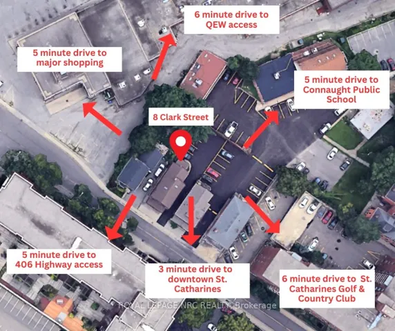 +"PublicRemarks": "Welcome to 8 Clark, a versatile property in the heart of St Catharines! Currently used as a law office on the main floor with an apartment on the second, it would make an excellent business with residence upstairs or the apartment could be rented out for extra income. Alternatively, the main floor could be converted back into a comfortable residential home! When we walk in, we see a comfortable den to the right side. Straight ahead we find the living room, dining room and potential first bedroom, all three currently used as offices. A kitchenette that could be easily converted back into a full kitchen can also be found on this level. Notice that all entrance doors are steel! We go upstairs to explore the apartment! We enter the comfortable living/dining area; the skylights were updated in 2020 and offer plenty of natural light coming in! The apartment also offers a good sized kitchen, 2 great sized bedrooms (notice the spectacular windows!) and a 3-piece bathroom. It's time to head down towards the basement. The first thing that stands out here is the full ceiling height! This space would make a great recreation room / work out room! Here, we find not one, but two 2-piece bathrooms, and a storage room with it's own exit! Out the back is the parking area where 6 parking spots are available. 8 Clark is truly a versatile property, ideal for a business/home combination."