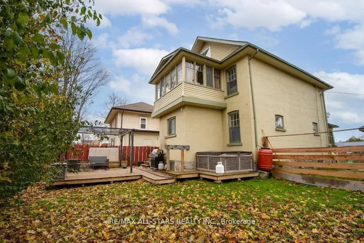 +"PublicRemarks": "Step into the charm of this beautiful century brick home, thoughtfully updated to offer modern comfort while preserving its timeless character. The main floor welcomes you with an open-concept layout featuring a custom kitchen, spacious living and dining areas, and the convenience of a main floor laundry/powder room. A large enclosed front porch doubles as a practical mudroom/entryway, perfect for busy family life. Situated on a large in town lot, this property provides room to play, garden, or simply enjoy the outdoors. The second floor offers three bright bedrooms and a well appointed 4 piece bath including a clawfoot bathtub, as well as a charming 3 season screened in balcony - a great place to enjoy your morning coffee. Continue to the third floor to find two generously sized bedrooms or great office space. The dry, well kept basement adds exception value with a dedicated games/recreation room and abundant storage/utility space. Just a one minute walk to the local school and park, this home is perfectly placed for families. With its ample space and flexible layout, it's also an excellent option for those seeking a comfortable live-work setup. A rare blend of historic character, modern updates, and unbeatable location - this home truly offers it all."