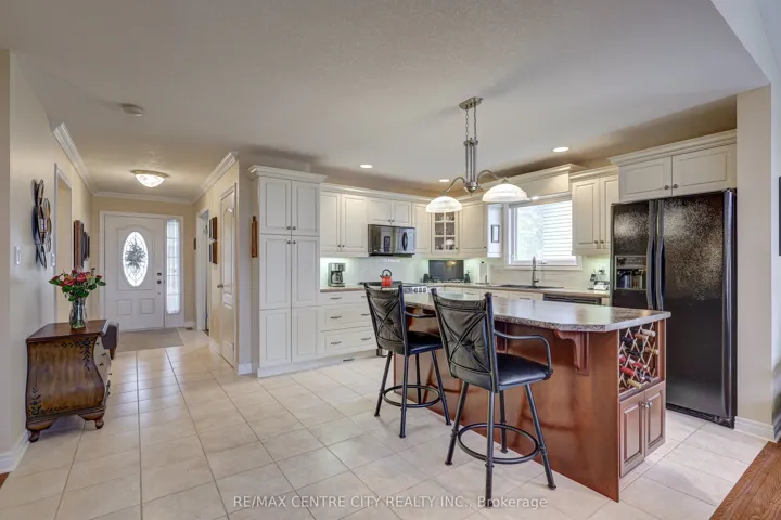 +"PublicRemarks": "Meticulous bungalow , nestled in the desirable community of Lake Margaret, set on a beautiful mature treed lot offering privacy and charm. This well-maintained 2+2 bedroom bungalow offers approximately 1,416 sq ft above grade plus an approximately 900 sq ft of finished living space in the bright walk-out lower level with potential for a granny flat or in-law suite. The main floor features cathedral ceilings in the living room with a stunning view from the windows, fireplace, widened hallways, hardwood and ceramic flooring, and an inviting eat-in kitchen with two-tone cabinetry. The spacious primary bedroom includes a walk-in closet. A large 5-piece main bath, an additional upper bedroom, a 2-piece guest bath, and a convenient main-floor laundry room. The lower level boasts a walk-out basement, filled with natural light, offering two additional bedrooms, a full bathroom, large rec room with gas fireplace, mini serving area, surround sound, built-in speakers, ample storage, a cold room, and storage under the stairs. Outdoor living is a highlight with three outdoor sitting areas, including a composite deck (5 years old) with deck lighting, a concrete lower patio, and a partially fenced yard. Additional features include a concrete driveway, double car garage, sprinkler system, tinted windows, central vacuum, wired security system, sump pump, rented hot water heater, 125-amp service, and extra insulation in the basement. Updates include a roof approximately 5 years old. This home offers exceptional space, functionality, and comfort in a sought-after neighbourhood-perfect for families or downsizers seeking quality and versatility"