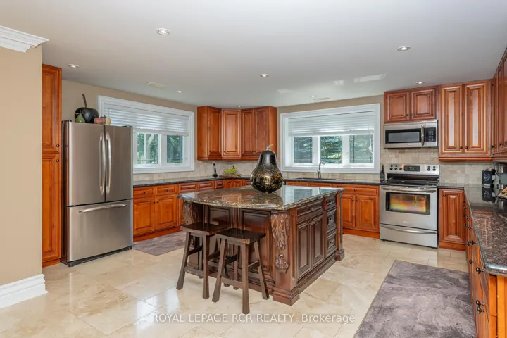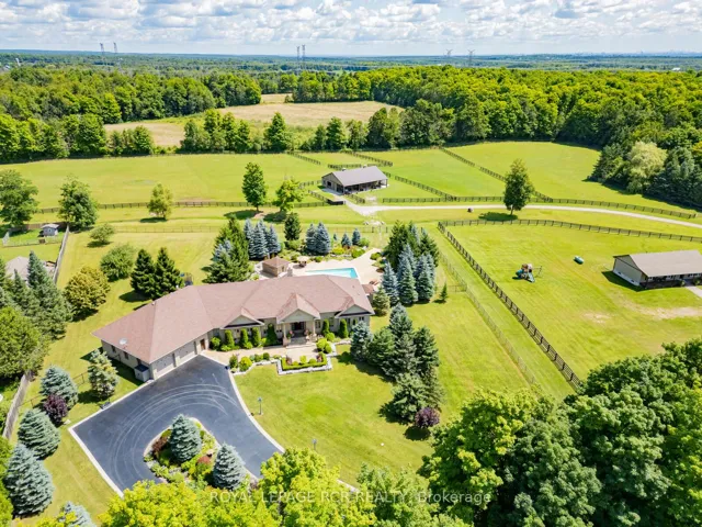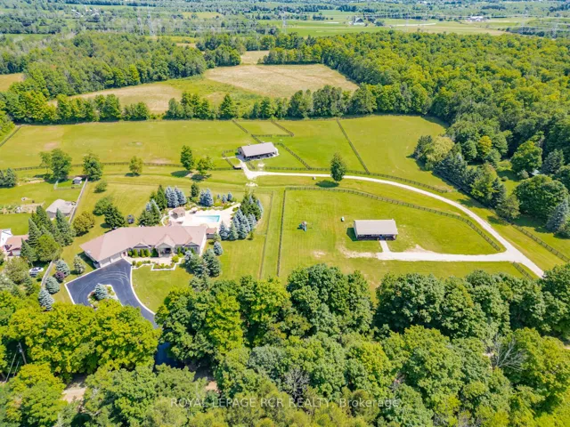 +"PublicRemarks": "Welcome to this stunning multi-generational country property situated on 44 acres near Acton. Enter the main house through automated electronic front entry gates. Features of the main house include nearly 5000 sq. ft. of luxury living. Maple kitchen w/ granite countertop and backsplash overlooking a large eat-in area with walk-out to large deck overlooking the pool and backyard. Thermador and Miele s/s appliances. Separate and formal open-concept dining room. Open-concept living room w/ cathedral ceiling and wood burning fireplace. Main floor office. Primary bedroom w/ walk-in closet 4 pc ensuite and walk-out to deck overlooking the 18 x 36 heated salt water pool w/ electric pool cover. Main floor laundry and a second laundry in the basement. Huge 9 car attached garage with access to the house and backyard. Fully finished walk-out basement set up as an in-law suite with full kitchen with granite countertop and centre island, large and bright bedroom with 3 pc semi-ensuite bath, , living , dining and games room and tons of storage. Gorgeous backyard with extensive wrought iron fencing. Multiple dining areas. 10 x 10 pool cabana. Approximate 4000 sq. ft. of stone decking with extensive landscaping and stunning gardens. 12 zone, 60 head sprinkler system for front and rear gardens. New roof 2025. 30 x 60 Gara Farm Structures barn with 6 System Fencing stalls, separate tack room and large hay storage area. 5 large oak-board paddocks with room for more and a separate driveway to the barn. Lots of room to add an indoor arena if desired. Updates include new geo-thermal furnace in 2022, new pool pump 2024, new pool heater and chimney 2023, Miele dishwasher 2024, Miele induction stove-top and wine fridge 2023. Generator for the full main house. The secondary dwelling features 3 +2 bedrooms. 2.5 baths, partially finished basement. Main floor laundry. Large eat-in kitchen. Separate septic system and drilled well. Propane furnace & central air conditioning. Built in 2018."