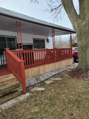 +"PublicRemarks": "Discover comfortable, affordable living in this spacious bungalow-style mobile home in Country Village Mobile Home Park, backing onto an open field with peaceful views and no rear neighbours. Enjoy a private, maturely landscaped yard, new exterior lighting, patio stone pads for outdoor living, and a welcoming enclosed front porch. Larger than it appears, the home features an inviting foyer, open-concept kitchen and living area, and a layout ideal for retirees or young families.The home offers 2 bedrooms plus addition space, 2 bathrooms including a 2-pc ensuite, walk-in closets, and blackout curtains in bedrooms. The fully renovated kitchen includes new countertops, Blanco sink, soft-close cabinetry, in-cabinet garbage/recycling, stainless steel appliances, and gas stove. Added heat in the front room ensures year-round comfort. Main bath features new backsplash and toilet, and the laundry room has updated sink and cabinetry with soft-close drawers.Mechanical includes two furnaces (one dedicated to the heated single-car garage), owned hot water heater, under-sink hot water heater in kitchen, water softener, attic and plumbing venting, and bathroom exhaust fan. Low monthly utilities average approx. $68 gas and $75 hydro.Exterior improvements include heated attached garage with bonus workshop/storage area, large rear storage structure, privacy fencing, landscaped cedars and spruce, new front door, ramp access, replaced windows and a double-wide concrete driveway with ample parking.Move-in ready with room to personalize, just minutes to Hanover and a short drive to Walkerton, offering affordability, comfort, and peaceful country-style living.Lease fees: $408/month (water included) + $25 water testing + $40 taxes = $473/month total payable to park."