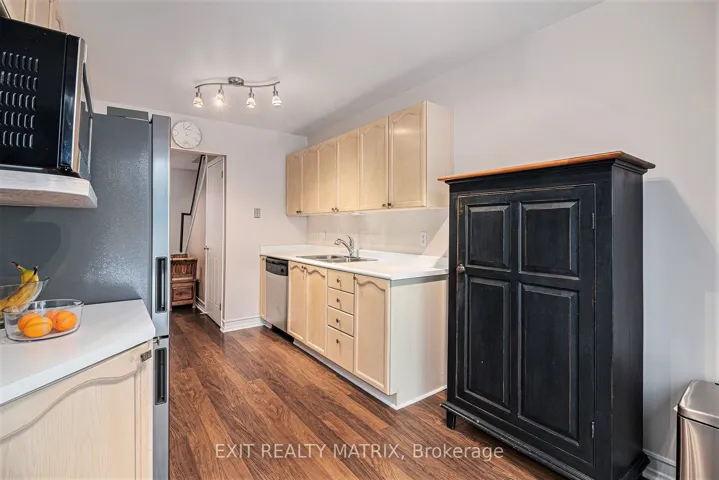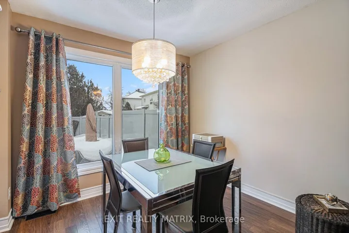 +"PublicRemarks": "Gorgeous Sun-Filled Townhome with No Rear Neighbours! Welcome to this beautifully updated, move-in-ready townhome offering bright open-concept living and exceptional functionality. The renovated kitchen features a breakfast bar overlooking the spacious living and dining areas - perfect for entertaining or everyday family life. Convenient direct garage entry adds everyday ease.Hardwood flooring runs throughout the kitchen, living room, dining room, and all bedrooms, creating a warm, cohesive feel throughout the main and upper levels.Upstairs, the spacious primary bedroom features his & hers closets. One secondary bedroom includes a built-in closet organizer, while the third bedroom offers generous space ready for your personal touch - ideal for families, guests, or a dedicated home office.The professionally finished basement expands your living space with a stylish rec room featuring tile and laminate flooring, a modern 3-piece bath, and ample storage.Step outside to your private, south-facing backyard oasis complete with a fabulous deck, retractable awning, brand new turf, and fresh wooden flower beds - creating a low-maintenance, beautifully landscaped retreat. With no rear neighbours, you'll enjoy added privacy year-round.Major updates include: new flooring (2022), new fridge, stove & microwave (2026), dishwasher (2024), furnace (2025), roof (2012), and deck (2013). Two-car driveway parking. Located close to highways, schools, parks, and shopping, this home checks all the boxes for comfort, convenience, and value."