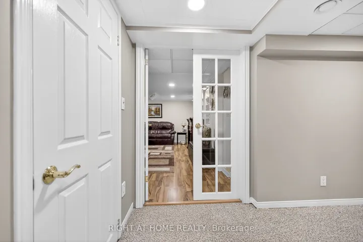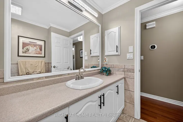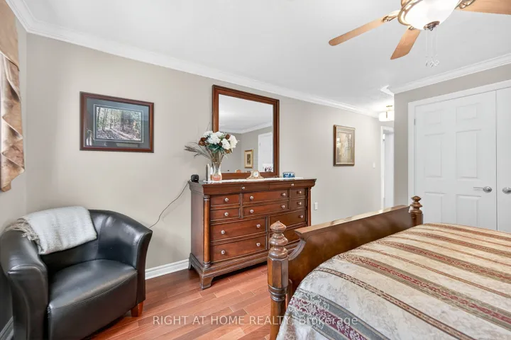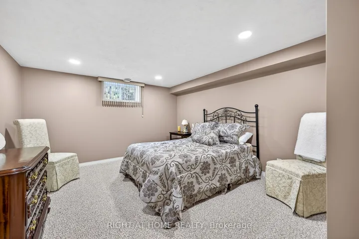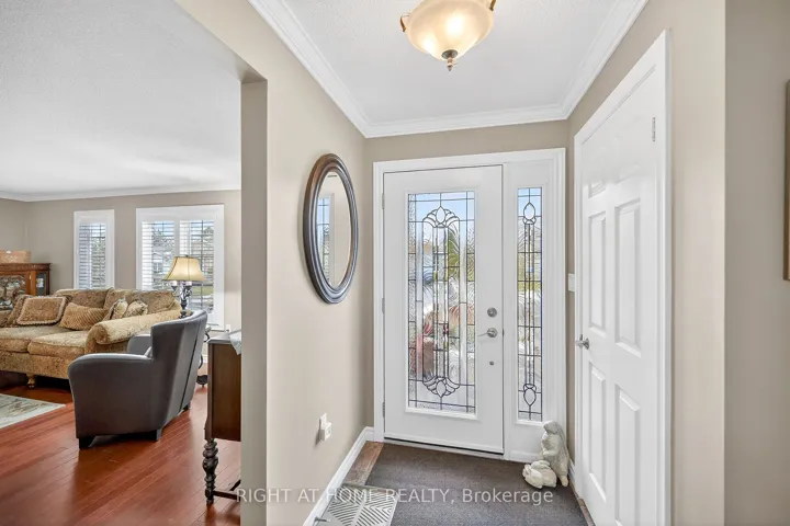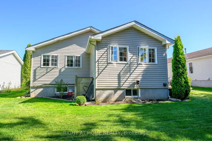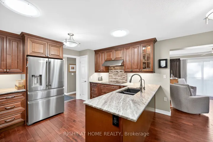 +"PublicRemarks": "Welcome to the Gem of Antrim Glen! This exquisitely finished bungalow with a double car garage is set on a desirable private lot backing onto tranquil green-space. Impeccably maintained & tastefully updated, the home offers 3,100 sq. ft. of total living space. The main level showcases a grand living room with gas fireplace, flowing effortlessly into the dining area, an ideal setting for hosting friends & family. The chef inspired kitchen is a true highlight, featuring custom cherrywood cabinetry, leather-finish granite counters, a solar light, breakfast nook, & professional-series stainless steel appliances, including a built-in induction cooktop & wall oven with microwave. The kitchen opens to a spacious family room filled with natural light & providing a walk-out to the spectacular yard. Two generous bedrooms & two full bathrooms complete the main floor, including a primary retreat with a spa-like walk-in jetted soaker tub & integrated sound system. The fully finished lower level continues to impress, offering an additional bedroom, home office, fitness area, expansive rec room with electric fireplace, bathroom with a shower, workshop, & abundant storage. The exterior of the property is exceptional with custom stone double driveway, front & rear stone patios, professionally landscaped gardens, wireless in-ground sprinkler system, & serene views of mature trees. Additional features include hardwood, main-floor laundry, insulated double garage with inside entry, brand-new furnace & A/C, leaf-filter eaves, central vac, water filtration system, & water softener. A complete list of updates & upgrades is available. Antrim Glen provides a vibrant lifestyle community with a wide range of amenities, including heated saltwater pool, sauna, BBQ area, residents' lounge & kitchen for large gatherings, billiards, shuffleboard, library, craft room, horseshoes, vegetable garden plots, & scenic walking trails. Move in ready, simply unpack & enjoy! Monthly Land Lease: $1210.16."