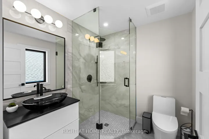 +"PublicRemarks": "Welcome to 102 Millpond Rd, a stunning custom built home offering over 4,300 sq ft of luxurious living in the heart of prestigious St. Davids. The striking exterior blends stone, sleek glass, hardie board, stucco & a concrete driveway with exposed aggregate - all creating a clean, upscale authentic with lasting durability. Step inside to discover a modern open-tread staircase, 10-ft ceilings, wide-plank engineered hardwood flooring & European style tilt-and-turn windows. The designer kitchen is the showpiece with premium built-in appliances, a 10-ft quartz waterfall island, seamless slab backsplash, & a walk-in pantry with built-in cabinetry. An oversized sliding door opens to a large covered composite deck with spectacular vineyard views, a lower patio, in-ground irrigation & a fully fenced, professionally landscaped yard - perfect for entertaining or serene relaxation. Main floor highlights include a bright dining & living area with a chic, minimalist gas fireplace, private office enclosed by a floor-to-ceiling glass wall, a laundry room with integrated storage & convenient access to the double car garage. Upstairs, the primary suite offers a spa-like retreat with a soaker tub, oversized walk-in rainfall shower, dual vanity & a walk-through closet complete with custom shelving. Three additional bedrooms each feature their own ensuite access, providing comfort and privacy for family or guests. The fully finished basement boasts a sprawling rec room with show stopping 100-inch electric fireplace with a granite stucco surround, luxury vinyl flooring, a 5th bedroom & a stylish full bathroom. Ideally located just minutes from local coffee shops, award-winning wineries, top-rated golf courses & the charm of Old Town Niagara-on-the-Lake."