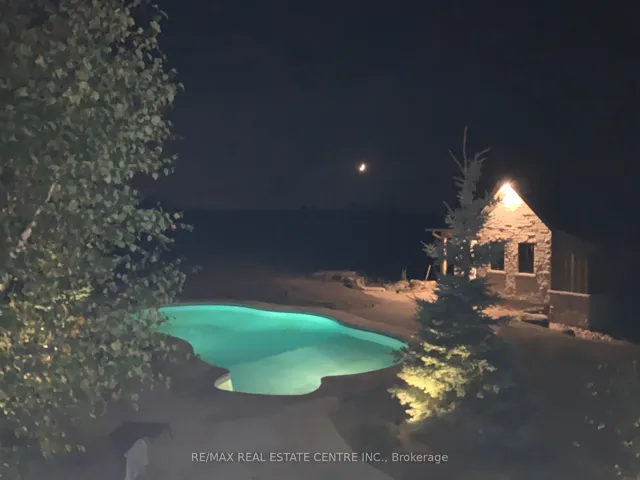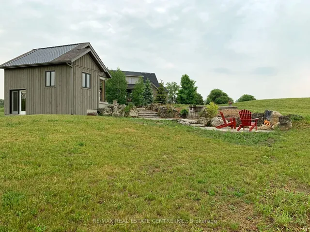 +"PublicRemarks": "Stunning custom built country estate home on 30 acres of peace, privacy and tranquility just west of Orangeville with easy access to major highways. Home features quality materials and workmanship top to bottom. New shingles (2025). Extensive landscaping, pool, hot tub, pool house and patios. Main floor primary suite with spa style ensuite (heated floors), walk in closet and gorgeous hardwood floors. Chef's delight kitchen with centre island overlooking front gardens and surrounding countryside. Lots of counterspace for the gourmet. Formal living and dining rooms. Cosy and comfortable family room with propane fireplace overlooking rear grounds and a walkout to deck overlooking pool. Handy main floor laundry with access to garage, powder room and more. Upper level features 2 bedrooms and a private 4 piece bath. Lower level rec room with amazing stone fireplace (wood burning), heated floors and a walkout to lower patio with easy access to pool, hot tub and pool house. Ideally set up for inlaw suite or casual entertaining. The 26' x 42' shop with separate driveway is an added bonus and ideal for owner operated home business. Possibility for second home on property (Township of Amaranth). 2 wells. Rogers fibre optic internet available. This lovely home is owner built and pride of ownership is evident throughout."