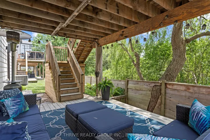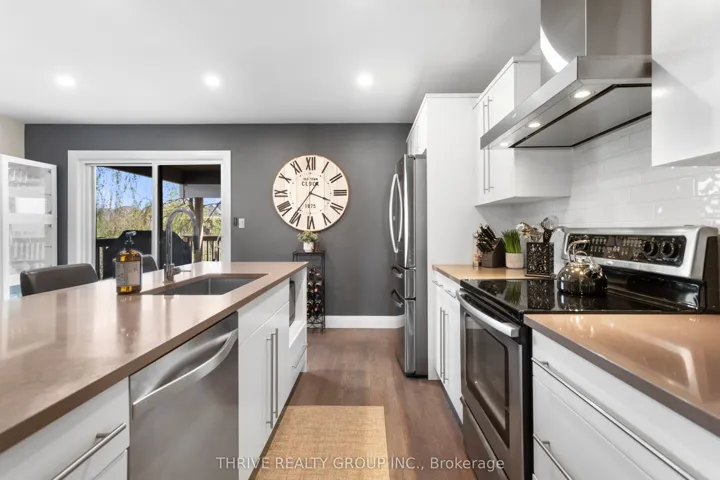 +"PublicRemarks": "Stunning Contemporary 2-Storey in Byron's Private Enclave: Welcome to this immaculate contemporary 2-storey home, quietly tucked away in a private enclave within one of Byron's most sought-after pockets. Meticulously maintained and thoughtfully updated, this home offers a bright open-concept main floor with stylish modern finishes-perfectly suited to today's lifestyle. The upgraded kitchen showcases sleek finishes and flows seamlessly into the dining and living areas, making everyday living and entertaining effortless. Step outside to the fully covered upper deck, where mature trees provide exceptional privacy and a tranquil, natural setting-an ideal space to relax or host guests. Upstairs, the spacious primary suite features a modern 3-piece ensuite, complemented by two additional generously sized bedrooms. The updated main bathroom includes a new tub, glass shower, contemporary tile, and modern fixtures. California shutters throughout the main windows add both elegance and privacy. The fully finished lower level extends your living space with a large family room, and walk-out to a second private covered deck. This lower walk out level is filled with natural light and includes updated flooring, a refinished 2 pc powder room, and a warm inviting atmosphere. Recent upgrades to the home include: Furnace & A/C (2021), Insulated garage door (2024), New LED pot lights throughout, Fresh paint and tasteful décor, Comfort-height toilets in all bathrooms, Smart Fridge with waterline, range hood & added pantry shelving, Upgraded laundry area with new cabinetry and counter. New stairs from upper deck to yard, and Gas line to BBQ. The exterior offers low-maintenance landscaping with a manicured lawn and modern curb appeal, while backing onto green space for added privacy and serenity. A common element fee of $285/month covers private road and driveway maintenance. Pride of ownership is evident throughout. Truly move-in ready and a must-see Byron gem."