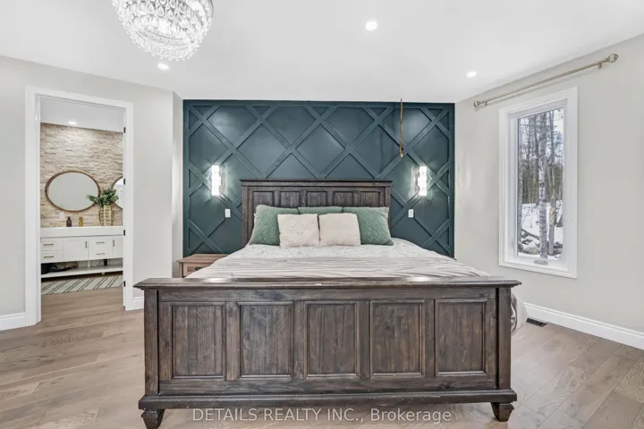 +"PublicRemarks": "Absolutely stunning! Beautifully upgraded 4 Bedroom Bungalow with a full addition recently added boasting over 3350 sq ft of luxury living space, nestled in amongst trees on a beautiful private 3 acre lot! The gourmet kitchen boasts Granit counter tops a large center island, ample cupboard space, breakfast Bar, pocket lighting and high-end SS-appliances. A full addition added to the Bungalow offers a very large Primary Bedroom, boasting an incredible ensuite bath room and a very large walk-in closet, electric fireplace, pocket lighting with patio doors to a large deck over looking the private rear yard. Spacious living room with woodburning fireplace and pocket lighting. Engineered hardwood throughout the main level. Beautifully renovated lower level boasts 2 family rooms (one could be huge 5th bedroom) 3 piece bathroom, Video projector, pocket lighting, utility room and large walk-in cold storage. ***The attached two car Garage is Oversized -24' wide x 28'6" deep with 60 amp service.*** The beautiful private rear yard feels like an oasis in the summer, 2 decks, Gazebo, pergola with interlock patio, 27' above ground pool, backyard with grass lawn and trees in the background... so beautiful and tranquil!"