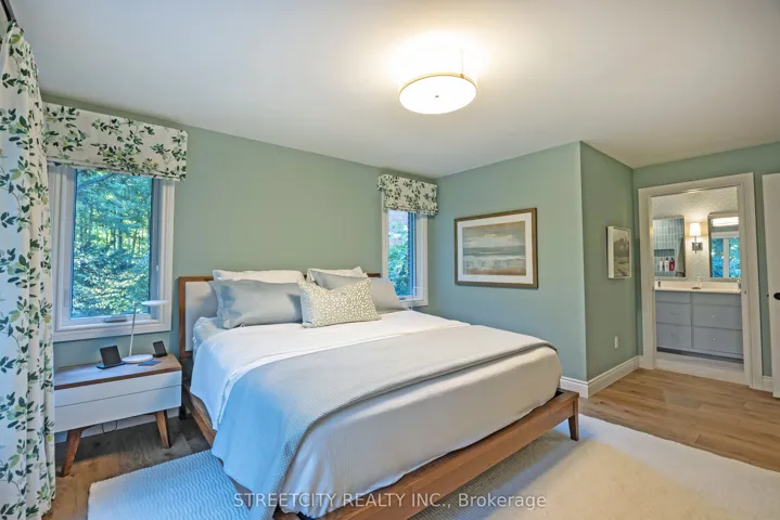 +"PublicRemarks": "Experience refined living at this executive ranch situated in prestigious Warbler Woods in the west-London community of Byron. Located within a welcoming court among distinguished residences, this spacious 2+2-bedroom home has undergone a thoughtful renovation inside and out. A detailed record of renovations is available, reflecting the uncompromising quality throughout. The property features a double door entry into an elegant foyer, a main floor den, and a center hall living room, as well as a well-appointed dining room designed for entertaining. The chef's kitchen boasts premium finishes and a spacious eating area with views of the surrounding forested yard and saltwater pool. There are multiple outdoor seating options on both the glass-railed deck and poolside patio. The family room is enhanced by newly installed skylights, an oversized patio door, entertainment space, and fireplace. The main floor includes two spacious primary bedrooms, each with its own private ensuite and extensive custom closet storage, offering significant privacy and convenience. The main floor laundry area is equipped with high-end appliances. The mudroom offers ample storage and a wet sink for various projects or pet care. A newly constructed open staircase leads to approximately 1,500 sq ft of lower-level living space with full walkout access to the landscaped rear oasis. This level features two bedrooms, abundant storage,4-piece bathroom, laundry room, and spacious family room overlooking the peaceful backyard and swimming pool. This wonderful home combines exceptional design and functionality, presenting a unique opportunity for long-term enjoyment."