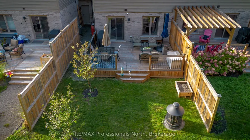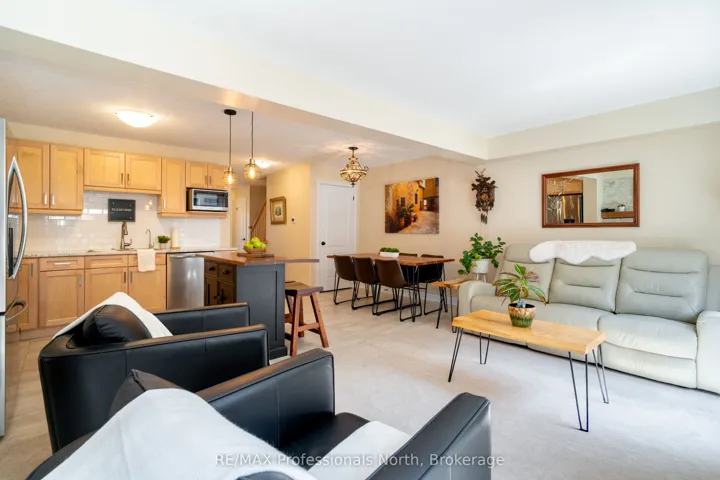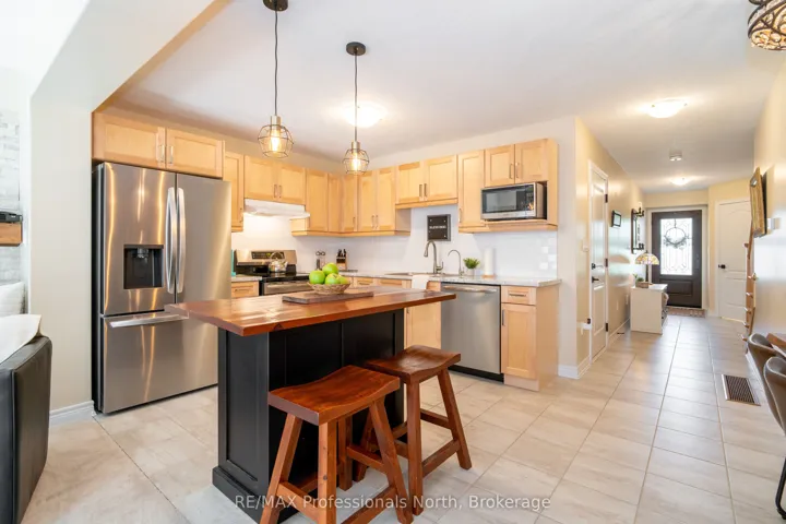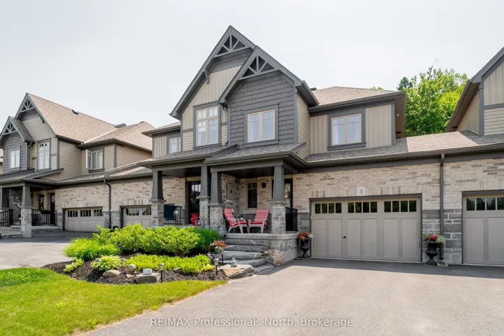 +"PublicRemarks": "Welcome to 3 Kelsey Madison Court a stylish and low-maintenance two-storey freehold townhouse in the desirable Brookside Crossing community of Huntsville. Built in 2019 by award-winning Devonleigh Homes, this beautifully maintained 3-bedroom, 2.5-bathroom home offers the perfect balance of comfort, function, and modern style, making it an ideal choice for young professionals, families, couples, or retirees. The exterior features a charming blend of brick on the main level with sandstone-toned vinyl siding above, a paved driveway, and mature trees in the treed zone behind the property that provide natural privacy and a peaceful setting. Inside, an open-concept main floor is designed for everyday living and entertaining, highlighted by a custom built-in unit with an electric fireplace, stone face surround, and mounted TV. A convenient powder room completes the main level. Upstairs, you'll find three well-appointed bedrooms, two full bathrooms, and laundry. The primary suite is thoughtfully designed, while the additional bedrooms offer flexibility for family, guests, or a home office. Step outside to the oversized back deck perfect for hosting summer dinners or enjoying a quiet morning coffee. The backyard is enhanced with fruit trees, gardens, and a contained fire pit, offering a cozy outdoor retreat. This welcoming neighbourhood also includes a park and the Gypsy Bill Creek, which flows to Fairy Lake, just steps from your front door. Everyday conveniences are close at hand, with Huntsville Hospital, grocery stores, restaurants, doctors offices, boutique shopping, and even dog parks only minutes away. For outdoor enthusiasts, Arrowhead Provincial Park, local lakes, and rivers provide endless recreational opportunities year-round. Move-in ready and set in one of Muskoka's most sought-after communities, this home is the perfect place to start your next chapter."