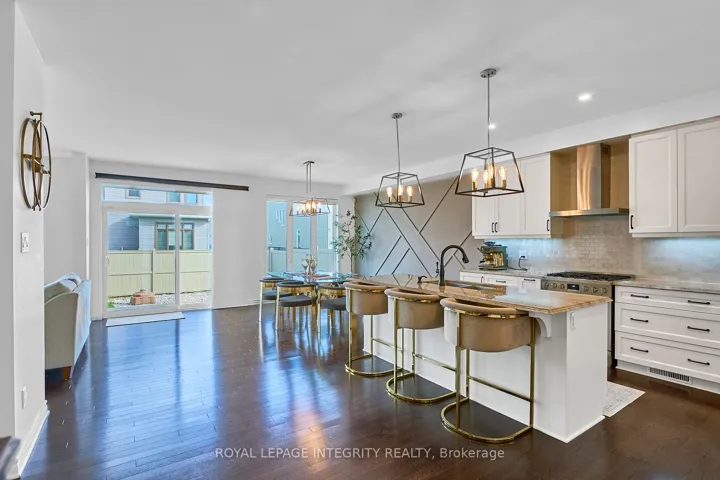 +"PublicRemarks": "Experience upscale living in this 2021-built detached home located in the prestigious Findlay Creek community of Ottawa. Freshly painted in 2024 with stylish accent walls, this 4-bedroom, 4.5-bathroom home is fully upgraded and move-in ready. Situated on a premium lot beside the sidewalk with added distance from neighbours, it offers enhanced privacy and curb appeal. Interlock landscaping highlights both the front and backyard, complemented by a newly built fenced yard with two secure gates and a finished two-car garage. Inside, enjoy a carpet-free layout with hardwood floors on both levels, upgraded lighting, and high-end appliances. The chef's kitchen features abundant cabinetry, generous workspace, a large island, and premium finishes. The great room includes a gas fireplace, while a main-floor living room with French doors provides flexible use as an office or additional bedroom. Upstairs offers four spacious bedrooms, each with bathroom access, including a primary suite with spa-like ensuite, a second bedroom with private ensuite, and a Jack-and-Jill bath for bedrooms three and four, plus second-floor laundry. The finished basement adds a large rec room, office, full bath, and second fireplace. Owned tankless water heater included. Exceptional comfort, style, and location. Findlay Creek living at its finest."