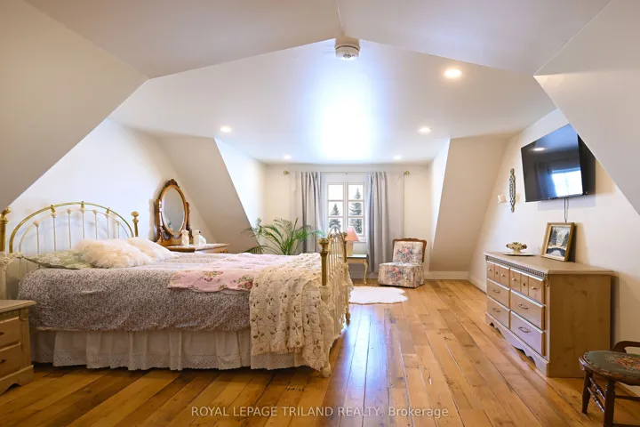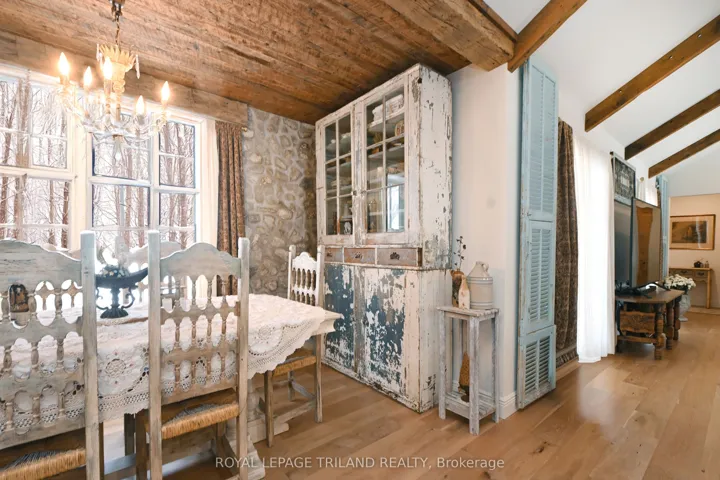 +"PublicRemarks": "The Carriage House: A Unique Country Executive Home Welcome to The Carriage House, a one-of-a-kind custom built 4,500 sq ft country executive home, nestled on a spacious half-acre lot. Conveniently located just 10 minutes from London, this stunning property offers the perfect escape from the urban grind while providing ample space for family and friends. Main Level Features The main level of this exquisite home is designed for easy, one-floor living. It includes: An extra large great room perfect for entertaining or relaxing with the family. A dedicated office space for remote work or study. Two spacious bedrooms, including the primary suite with a luxurious ensuite bathroom. A total of 2.5 baths on the main level for convenience. A gourmet kitchen equipped with modern amenities and a true walk-in butler's pantry, ideal for culinary enthusiasts. Upper Loft Retreat The upper loft area provides a very private bedroom retreat complete with its own ensuite bathroom, offering a sanctuary of peace and privacy for guests or family members. Expansive Lower Level The lower level of The Carriage House is designed for recreation and additional living space, featuring: Two additional bedrooms for guests or family. A huge recreation room that can accommodate various activities. A dedicated games room for entertainment. A well-appointed 4-piece bath for added convenience. Unique Interior Accents The interior of this fabulous home is adorned with rustic timber beams and select reclaimed wood floors and ceilings, creating a warm, inviting atmosphere. These design elements blend seamlessly to provide a touch of rustic charm to the contemporary elegance of the home. Energy Efficiency and Quiet Comfort Built with "whole home" ICF (Insulated Concrete Form) construction, The Carriage House offers incredible year-round energy efficiency and a quiet living environment, ensuring comfort in all seasons. A Must-See for Unique Property Buyers."