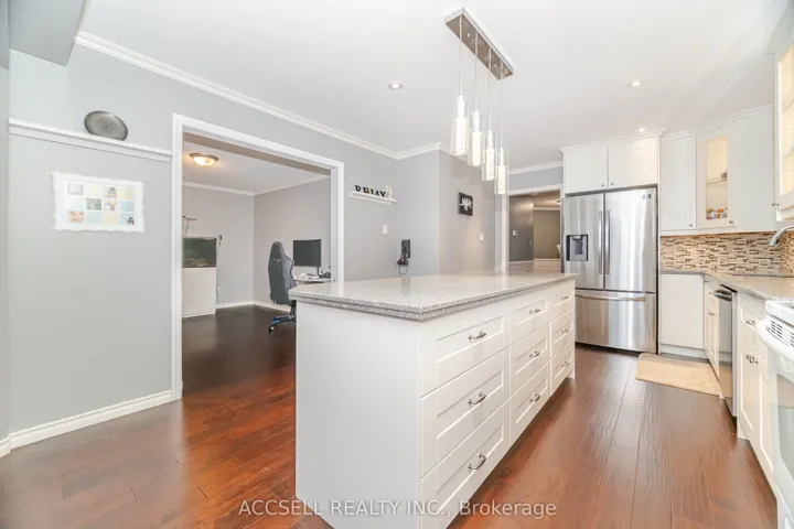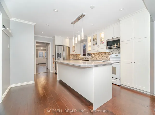 +"PublicRemarks": "This executive home is nestled on a quiet, tree-lined street in Whitby's highly desirable Pringle Creek community - a wonderful place for families to call home. Meticulously maintained and truly move-in ready, this bright and spacious home features a thoughtfully designed layout ideal for both everyday living and entertaining. The main floor showcases high-quality renovations, including an expanded and stunning eat-in kitchen with Sile Stone countertops, stainless steel appliances, dual-zone wine fridge, and abundant storage. Beautiful maple hardwood flooring flows seamlessly through the living room and kitchen, complemented by pot lights and an updated main floor bathroom. A walk-out from the kitchen leads to a deck overlooking the private backyard, complete with beautiful perennial gardens and no neighbours directly behind. The cozy family room features built-in cabinetry, a gas fireplace, and a second walk-out to the deck - perfect for relaxing or hosting guests. The main floor also offers a convenient laundry room with direct access to both the garage and side yard. Upstairs you will find four generously sized bedrooms, including an impressive primary retreat with a walk-in closet and a beautifully renovated spa-inspired five-piece ensuite featuring an air-jet tub, separate glass-enclosed shower and heated floors. The second-floor main bathroom has also been renovated, and newer broadloom has been installed throughout the upper level. The partially finished basement offers a spacious recreation room along with additional office or workout space, providing great flexibility for growing families. The front and backyard are equipped with an inground sprinkler system (2024). Major updates include shingles (2018) and a heat pump providing both heating and air conditioning (2022). Ideally located in a sought-after neighbourhood just minutes from top-rated schools, parks, shopping, public transit, and convenient access to Highways 401, 412, and 407."