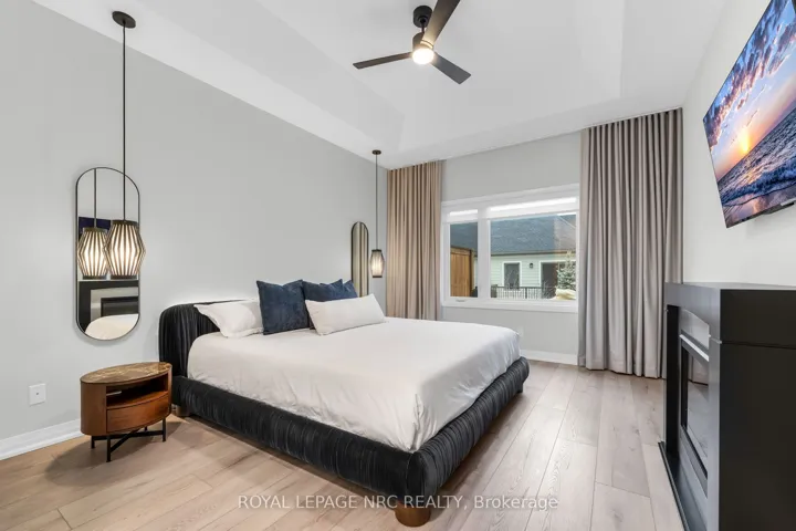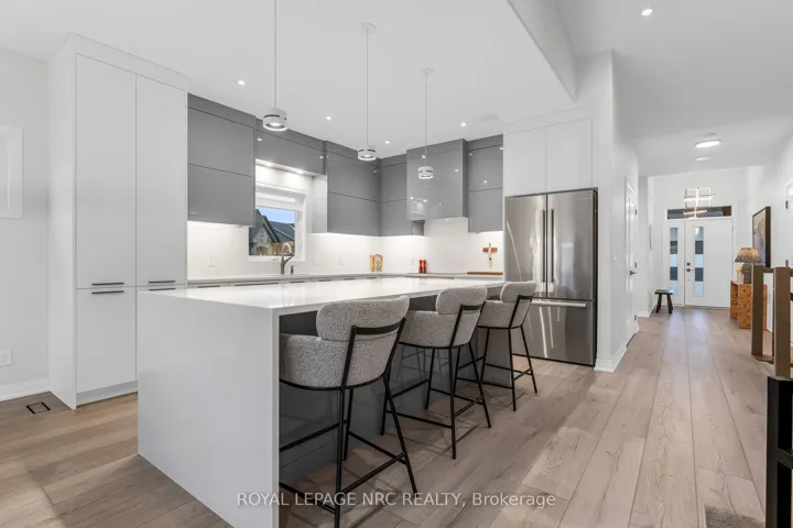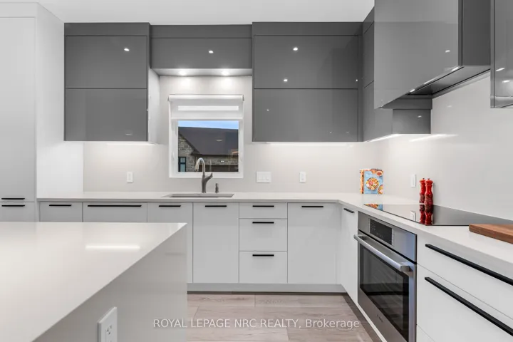 +"PublicRemarks": "Absolutely stunning end-unit bungalow in the sought-after Lavender Fields community. This is the largest model in the neighbourhood, offering 1,508 sq ft on the main level plus 850 sq ft of professionally finished lower-level living space and an incredible deck & patio. From the moment you enter, the sense of space is apparent. Ten-foot ceilings grace the entrance and both bedrooms, while the living room features a dramatic 12-ft vaulted ceiling, creating an open, airy feel throughout. Over $200,000 in curated upgrades elevate this home. The custom kitchen showcases premium cabinetry and hardware, Silestone quartz countertops and backsplash, smart storage solutions including a spice drawer and pantry, and an extra-wide 9-ft waterfall island with storage on both sides. High-end appliances include a Bosch induction cooktop, wall oven and refrigerator, plus a Fisher & Paykel integrated two-drawer dishwasher. The restful primary retreat offers a walk-in closet, pendant lighting, floor-to-ceiling custom drapery, and a spa-inspired 4-pc ensuite with double sink vanity and glass-enclosed shower. The builder-finished lower level features an open spindle staircase, spacious recreation room, third bedroom, 3-pc bath, and ample storage. Outdoor living includes a private oversized composite deck and interlocking stone patio, surrounded by greenery. The upgraded garage features an epoxy floor, EV-charger ready rough-in, painted walls, and insulated attic. Additional features include smooth ceilings, upgraded trim and round-edge drywall, integrated central speaker system, Kusco lighting, upgraded plumbing fixtures, flow-through humidifier, whole-home water purification, 12mm extra-wide plank flooring, 3M privacy window tint, and motorized blinds. Low maintenance fees cover water, management, landscaping, and snow removal, offering true turnkey living in an exceptionally well-run, architecturally controlled community in prestigious Fonthill. Virtual Tour available."