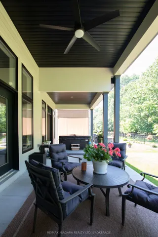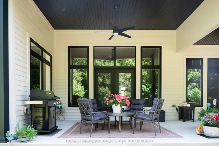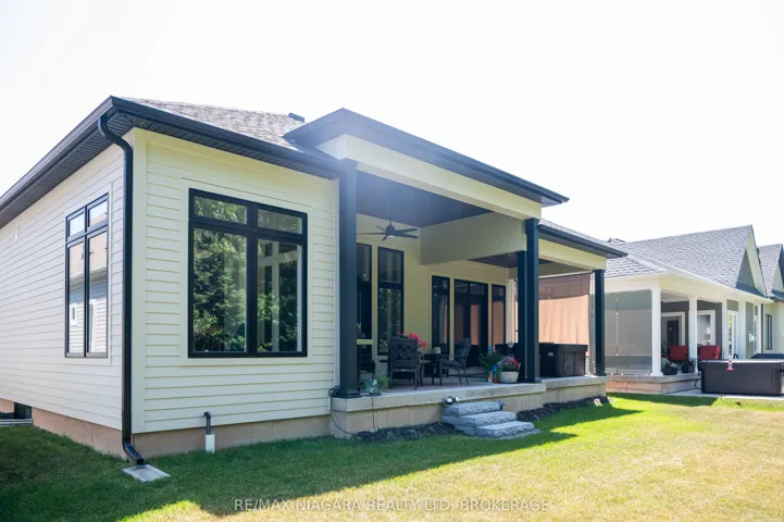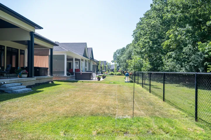 +"PublicRemarks": "The ultimate in luxury bungalow adult living-this must-see home is truly one of a kind! Set on a rare 94 ft x 357 ft lot with stunning views of protected Carolinian forest, this 2+1 bedroom, 3-bathroom freehold home offers over 2,960 sq ft of exquisitely finished living space in The Oaks at Six Mile Creek-one of Niagara's most desirable adult lifestyle communities. Backing onto conservation land with no rear neighbours, this customized Oak B model is filled with natural light and upgraded with over $100,000 in premium features. Inside, soaring 12-ft flat ceilings, 8-ft doors, and expansive windows frame serene forest views. The chef-inspired kitchen boasts two-tone cabinetry, quartz countertops, open shelving, and a sleek island with barstool seating. The primary bedroom offers a spa-like 3pc ensuite, walk-in closet, and garden doors leading to a private covered patio with a roll-down screen-perfect for coffee or wine surrounded by nature. A second bedroom or office, designer 3pc bath, and mudroom with laundry and garage access complete the main floor. Downstairs, guests or family enjoy a finished rec room, 3rd bedroom, and 4pc bath. Outside, the multi-level aggregate patio, landscaped yard, and private forest access feel like a retreat. The extra-wide, extra-deep, and extra-tall insulated garage fits two full-size vehicles with room for a lift or workshop. Just a short walk to Lake Erie, the 26km Friendship Trail, and downtown Ridgeway's vibrant restaurants, shops, and amenities-this home delivers the ultimate blend of luxury, privacy, and lifestyle."