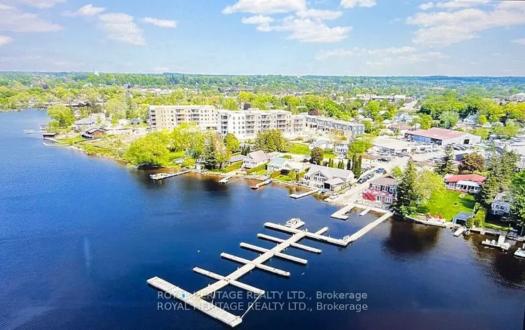 +"PublicRemarks": "Welcome to a refined lakeside retreat on Cameron Lake, ideally located in the heart of Fenelon Falls, affectionately known as the Jewel of the Kawartha's. Set on the fourth floor of a contemporary, 2023-built condominium, this beautifully designed two bedroom, two bathroom residence offers 1,017 square feet of thoughtfully curated living space that blends modern comfort with effortless waterfront living. Inside, the home showcases upscale finishes throughout, including wide-plank luxury vinyl flooring, a designer kitchen island topped with quartz counters, stainless steel appliances, and a calming neutral palette that complements the natural surroundings. The open-concept living and dining area is anchored by a sleek fireplace and flows seamlessly to a spacious private balcony, where tranquil water views create the perfect backdrop for morning coffee or evening relaxation overlooking the Trent Severn Waterway. The primary bedroom retreat features peaceful sunrise views, a spa-inspired ensuite with double sinks and a glass-enclosed shower, and a generous walk-in closet. The second bedroom is equally bright and versatile, ideal for guests, a home office, or a creative space. Added conveniences include in-suite laundry, a private storage locker, and underground parking, making everyday living both comfortable and secure. Residents enjoy an exceptional suite of resort-style amenities, including a modern clubhouse with fitness facilities, a party kitchen and lounge with fireplace, and a heated outdoor pool. Just steps from Lock 34 and the Victoria Rail Trail, the location invites year-round enjoyment with kayaking, boating, cycling, snowshoeing, and cross-country skiing at your doorstep. This lakefront condominium represents exceptional value in today's market and a rare opportunity to secure modern waterfront living with premium amenities, walkable conveniences, and timeless Kawartha charm."