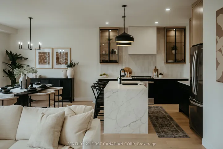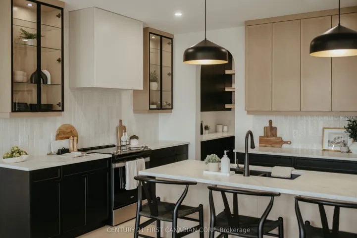 +"PublicRemarks": "Welcome Home to Foxfield North, an Upscale and Nearly-Complete Neighbourhood in Northwest London! This 2,516 Sq Ft Model Home is thoughtfully designed and crafted inside and out. The modern exterior blends contemporary peaks with timeless finishes, featuring a striking combination of masonry, board-and-batten, and black-framed windows for maximum curb appeal. Step inside to an expansive entryway with 9' ceilings on the main level, and wall paneling through the hallway. An open-concept living area opens up towards the rear of the home with a chef-inspired kitchen anchoring the space, overlooking the living and dining areas. Custom cabinetry, quartz countertops, and a spacious island with a breakfast bar draw the eye with the dazzling finishes, while an expansive walk-in pantry offers secondary prep space with custom open shelving and additional cabinetry. Oversized 6'x8' windows and patio doors are standard finishes that flood each home with natural light. Upstairs, you'll find four generous bedrooms, including a luxurious principal suite with a walk-in closet and spa-like ensuite featuring double sinks and a glass-enclosed curb-less shower. A second-floor laundry room with a sink adds extra functionality for busy households. Built on an expansive 40' wide by 155' deep lot nestled on the corner of a quiet cul-de-sac in the middle of a low-density neighbourhood, this home provides the perfect balance of privacy and accessibility. Living in Foxfield North, you have easy access to brand new schools and parks, large shopping centres, plentiful restaurants, and all the amenities NW London has to offer. Now is your chance to own this dream home, or fully customize and build your own! Contact the Listing Agent today for more details."
