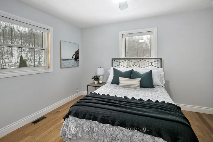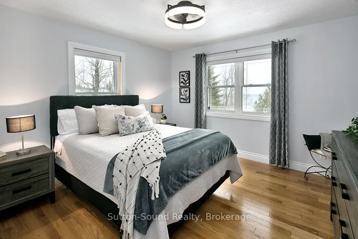 +"PublicRemarks": "CUSTOM BUILT HOME AND SHOP WITH SEASONAL VIEWS OF GEORGIAN BAY! Located on sought after Grey Rd1, close to waterfront parks, water access, hiking and desirable areas of Georgian Bluffs. This exceptional 4 bed, 4 bath executive home showcases beautiful hardwood floors, an abundance of windows and natural light and many detailed finishes. The main level offers an open concept kitchen/dining/great room with Vandolder cabinetry, quartz countertops, large breezeway entry and laundry room. The sliding doors allow direct access to composite decking, hot tub and beautifully landscaped/private backyard. Upper level offers 3 bedrooms with primary walk-in closet and ensuite and full guest bath. Upper deck is perfect for morning coffee and Georgian Bay sunrises. Lower level has 4th bed/office, 3 pc bath and finished family room. Upper and lower entrances into the house from attached garage. Separate 600 sq ft 2 bay garage/shop with extra tall overhead doors. This home is extra efficient with heat pump and full home standby generator. For the extensive list of updates, ask your realtor and book your showing!"