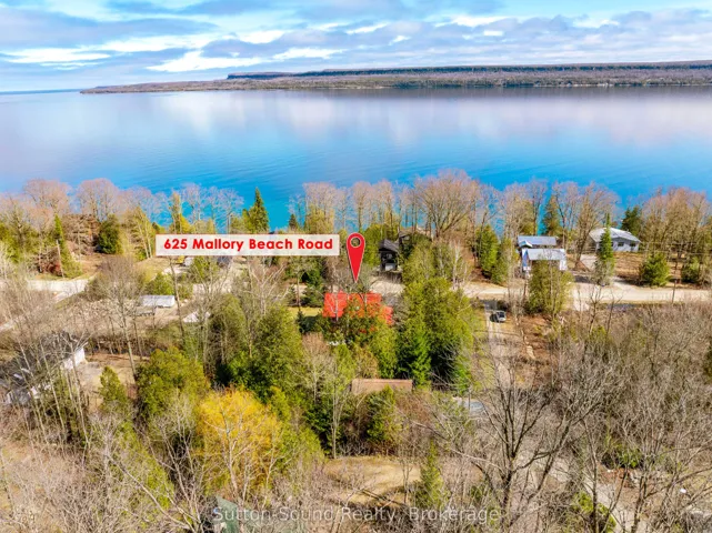+"PublicRemarks": "Welcome to 625 Mallory Beach Road, an immaculate True North log home set on a serene double lot with a detached 26' x 28' heated and insulated garage. Surrounded by beautifully landscaped grounds, this private retreat features a tranquil pond, waterfall, and stream, creating a peaceful natural setting right in your own backyard. Enjoy exceptional access to the outdoors with Georgian Bay access directly across the road and the Bruce Trail located at the end of this quiet, dead-end street-offering minimal traffic and maximum privacy. The home has been thoughtfully updated throughout and is truly move-in ready. The main floor offers an inviting open-concept layout, complete with a convenient 2-piece bathroom and laundry hookups. Upstairs, you'll find a spacious primary bedroom with walk-in closet, two additional bedrooms, and a beautifully renovated bathroom with skylights that flood the space with natural light. Additional features include a forced-air propane furnace and a Generac propane generator that powers the entire home during outages. The partially finished basement includes a comfortable rec room and a 2-piece bathroom with direct access from the hot tub-perfect for relaxing year-round. A rare opportunity to own a peaceful, nature-filled retreat just steps from Georgian Bay. This home has been meticulously cared for and is turn-key for it's next family for many years to come."