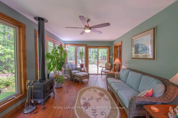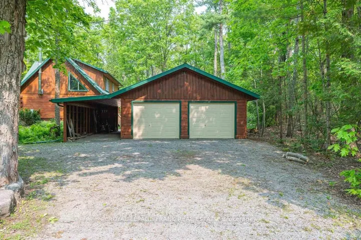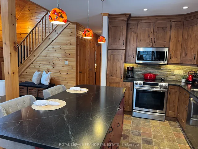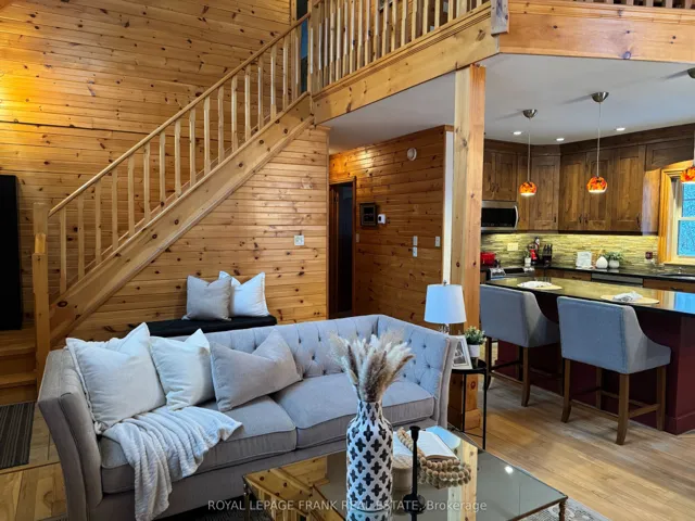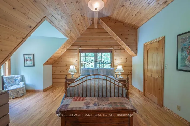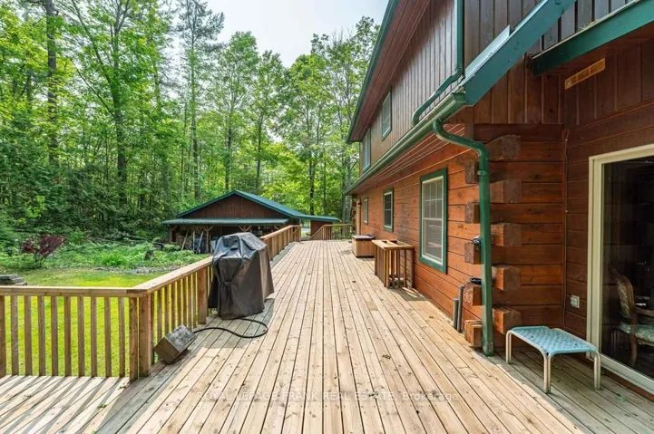 +"PublicRemarks": "Well maintained home nestled on 1.5 acre treed lot a short walk to a public access on Pigeon Lake for great swimming. You won't be disappointed by this classic rustic log home featuring 3 bedrooms, 2.5 baths, stunning vaulted ceilings, open concept with a cozy wood stove which is WETT certified. The 4-season sunroom with propane stove overlooks a private treed yard. The updated kitchen with alderwood cabinets and soapstone counters blends perfectly with the open concept living area. The main level bedroom is located across from a newly renovated bathroom. The second floor has a large primary suite with a 5 pc ensuite bathroom plus an office area open to the floor below. The lower level is fully finished with a large family room and plenty of storage. Screened in porch, large deck, perennial gardens and an oversized double car garage with carport. Situated on a township road, and a school bus route, close to the town of Buckhorn."