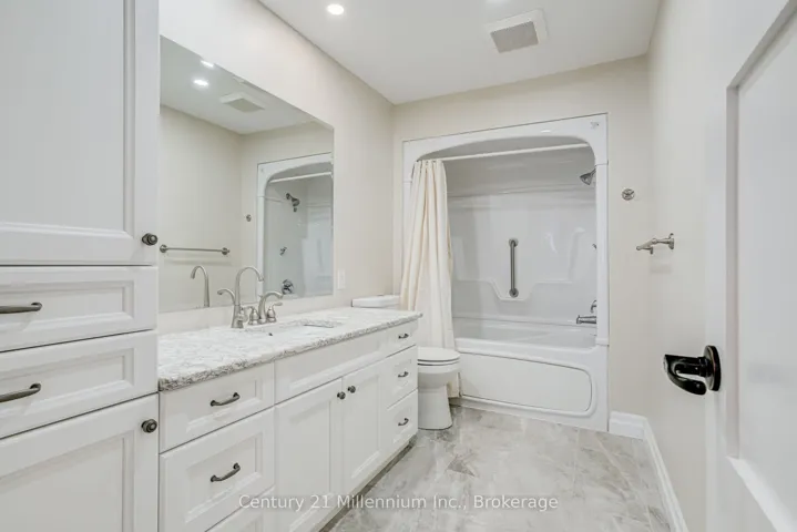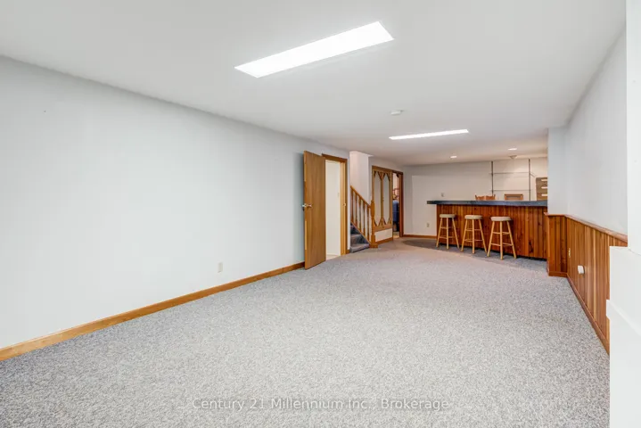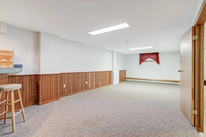 +"PublicRemarks": "Welcome to this thoughtfully updated bungalow, perfectly situated just steps from the hospital and within easy walking distance of all that downtown Wiarton has to offer. Combining modern finishes with everyday convenience, this move-in-ready home is ideal for a wide range of buyers. The fully renovated main floor features a bright, open-concept living space accented by engineered hardwood flooring and a stunning custom kitchen that seamlessly blends style and functionality. Three generously sized bedrooms and a full bathroom complete the main level, making this an excellent option for families, retirees, or anyone seeking comfortable one-level living. Enjoy affordable, efficient comfort year-round with a natural gas boiler heating system. Car enthusiasts, hobbyists, and those in need of exceptional storage will appreciate the rare garage setup which is an attached garage, bonus workshop, and a second garage, all connected and offering over 1,200 sq ft of versatile space. Step outside to a spacious, private backyard featuring a new deck with privacy louvers making it perfect for entertaining, relaxing, or enjoying quiet evenings outdoors. The finished walk-up basement adds even more value, offering additional living space complete with a bar and a second full bathroom, ideal for hosting guests or creating a cozy rec room. With its prime location, modern renovations, impressive garage space, and private outdoor setting, this Wiarton bungalow truly checks all the boxes."