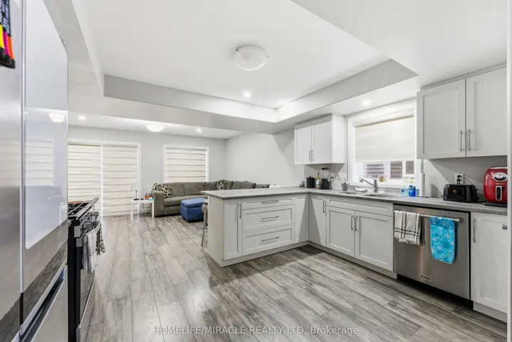 +"PublicRemarks": "Sun-filled, private and move-in ready, this exceptional semi-detached home combines lifestyle and location. Modern comfort meets everyday convenience in this beautifully upgraded 4-bed, 4-bath private semi with no neighbours on one side or behind. Bright and spacious, the rare orientation delivers sunrise views from the living room and spectacular sunsets from the dining area. The open-concept living area is an entertainer's delight with upgraded kitchen featuring quartz counters and an absolutely stunning centre island, custom cabinetry, stainless appliances and a built-in workspace. Large windows on multiple sides flood the home with natural light. The primary bedroom suite offers a walk-in closet and renovated ensuite with large shower and double quartz vanity. Two additional well-sized bedrooms are bright and flexible for kids or hybrid work. Main-level 4th bedroom with private 3-pc ensuite and walk-out to the backyard is perfect for guests, in-laws or a home office making it ideal for multi-generational living. Quality finishes throughout include upgraded hardwood, smooth ceilings, modern lighting and designer touches. The finished basement provides recreation space, home gym or media area with potential for future income. Located in a family-friendly neighbourhood minutes to highways, parks, schools and shopping, and only a 10-minute walk to Mi Way transit."