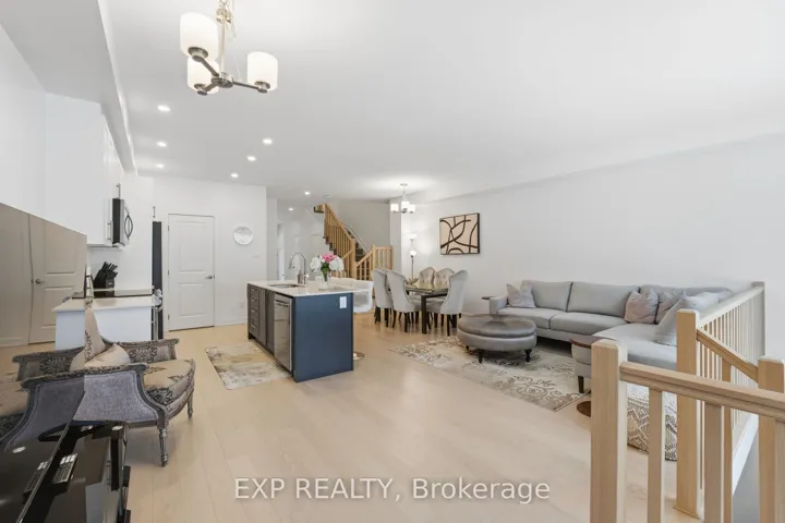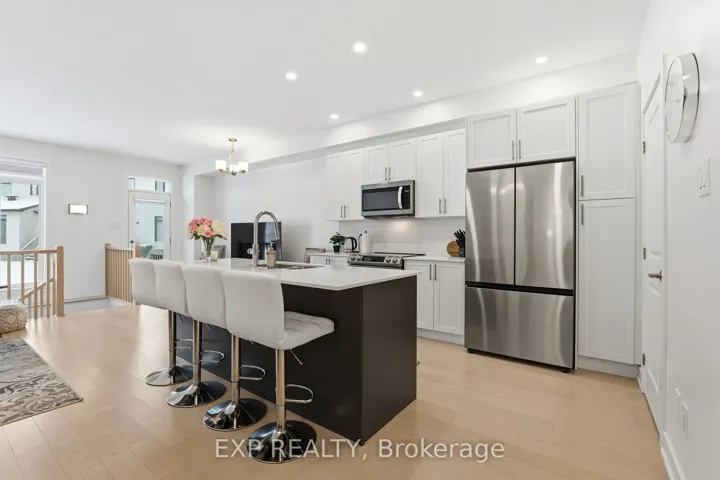 +"PublicRemarks": "WELCOME TO THIS STUNNING 3-BEDROOM CLARIDGE WOODHALL MODEL WITH NO REAR NEIGHBOURS AND EXTENDED REAR YARD IN BARRHAVEN! This beautifully maintained 2023 brick townhome offers the perfect blend of modern upgrades and functional living across three finished levels. Featuring 3 bedrooms, 2.5 bathrooms, a finished basement, and an extended backyard, this home is ideal for families, professionals, or anyone looking for turnkey living. Step inside to a welcoming foyer with clean, modern finishes and convenient access to the attached garage. The main floor showcases a bright, open-concept layout designed for everyday living and entertaining with wide plank engineered hardwood floors. The spacious living and dining areas flow seamlessly into the upgraded kitchen, complete with contemporary white cabinetry, quality finishes, walk in pantry, quartz counters, and a large breakfast bar island-perfect for hosting or casual meals. Large windows fill the space with natural light and provide access to the extended backyard with no direct rear neighbours, offering added privacy and outdoor enjoyment. Upstairs, the generous primary bedroom retreat features a walk-in closet and a private ensuite with a sleek vanity and glass shower. Two additional well-sized bedrooms, a full bathroom, and convenient second-level laundry complete this floor. The fully finished basement adds valuable living space, featuring a large recreation room with a cozy gas fireplace-ideal for a family room, home gym, or media space-along with plenty of storage and mechanical areas. Located in the sought-after Barrhaven community, close to parks, schools, trails, shopping, and everyday amenities. 24 hours irrevocable on all offers."