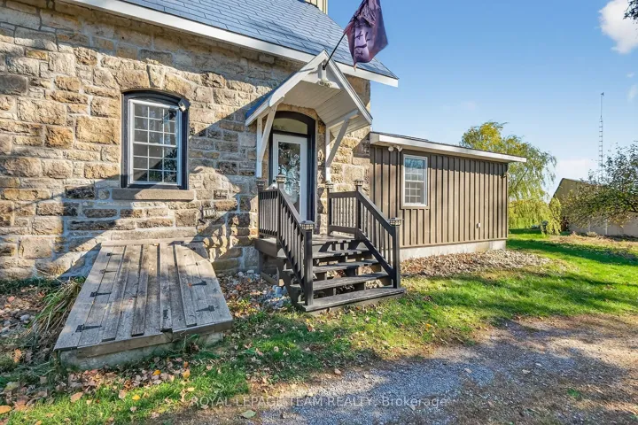 +"PublicRemarks": "Just south of the growing town of Smiths Falls on a tree lined country road you will find this Century stone farm home. Its perched on the high point of the cedar rail fenced, 4.29 acres of land that it has watched over for 110 plus years! The home is set back from the road on these tranquil acres, is surrounded by mature maples and farm hay fields. Take a moment to think about the horse that likely pulled a bucket to excavate for the homes stone foundation or the craftsmen that toiled to build it with chisels, axes all long before conventional tools were born into our current home builders trades. This home is an exceptional example of homestead that has been loved and improved over the years. You'll appreciate that its stone masonry joints have been repointed, a metal roof has been installed, windows and doors have been replaced while maintaining the interiors deep wall character and period trim. The plumbing and electrical systems have been updated, there is a new furnace and energy efficient heat pump, the country kitchen was rebuilt and this home has been lovingly expanded to suite our modern life style requirements for more family spaces using a board and batten exterior to compliment the stone. Through the ornamental gates there is a separate 2 car garage, an updated septic system ( installed aprox 2012 ), a 24' x 70' insulated, heated hobby quonset building professionally built at the rear of the property for those that dream big with their hobbies. But it's time for a new chapter to be added to its 110 year old story and for that, its now looking for a new family to call it home. Please take the time to explore the many photos for this 3 bedroom 2 bath home, its virtual tour and the attached home plan layout. Book a private showing, walk the grounds, sit on the deck, fall in love and add your chapter into this stone homes story."