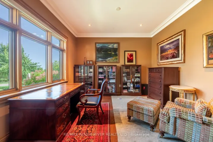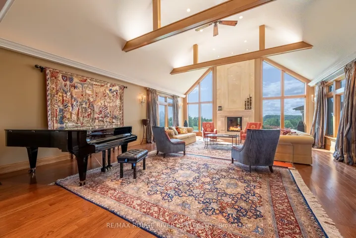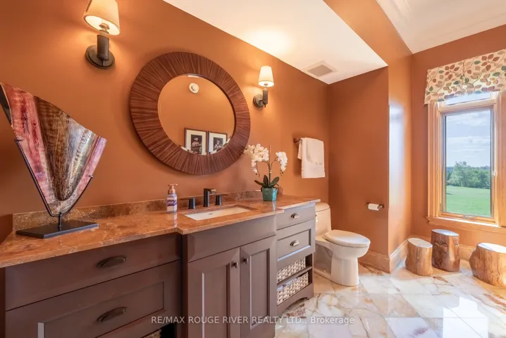 +"PublicRemarks": "An Exceptional Country Estate in Northumberland County. Set on 24 acres of rolling countryside with uninterrupted 360-degree views, this distinguished estate offers a rare balance of architectural refinement and natural beauty, just minutes north of Cobourg and within comfortable reach of Toronto. Thoughtfully designed and built to exacting standards, the 11,000 sq. ft. residence (7,500 sq. ft. above grade) blends timeless proportions with modern comfort. The arrival unfolds across manicured grounds featuring orchards, curated stonework, and landscape installations by renowned artisan John Shaw-Rimmington, creating a setting that feels both composed and serene. Expansive stone terraces surround a resort-style pool, ideal for entertaining or quiet retreat. A private trail network winds through the property, leading to a hilltop vantage point with sweeping views toward Lake Ontario. Inside, the home is defined by volume and balance. A dramatic great room with 16-foot ceilings, marble columns, and a statement fireplace anchors the principal living spaces, complemented by more intimate rooms for everyday living. A Downsview-designed chef's kitchen, butler's pantry, and adj0oining family room offer a seamless blend of form and function. Seven bedrooms and six baths include a private two-bedroom suite with its own garage-ideal for guests or extended family. The primary suite features a dressing room, spa-inspired ensuite with heated floors. Geothermal heating and cooling, a heated three-car attached garage, a separate two-car garage/workshop, and curated designer finishes complete this quietly exceptional estate-well suited as a refined full-time residence or an elegant country retreat for local, GTA and international buyers seeking privacy, space, and distinction."