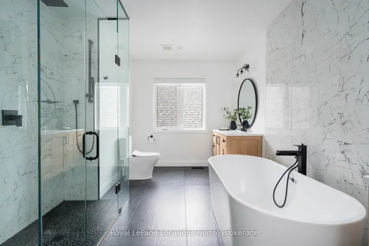 +"PublicRemarks": "Luxury Living in the Heart of Blue Mountain ~ Experience the essence of refined mountain living in this extraordinary 6-bedroom, 6-bathroom executive estate offering 4,000 sq. ft. of luxurious comfort and timeless style. Perfectly positioned to capture panoramic views of Blue Mountain, this residence blends contemporary elegance with alpine charm. Enter through double glass doors into a dramatic great room featuring soaring 18-foot vaulted ceilings, custom built-in cabinetry framing a grand gas fireplace, and floor-to-ceiling windows with remote blinds that fill the space in natural light. European white oak flooring flows seamlessly throughout, adding warmth and continuity to the home's elevated aesthetic. The chef-inspired kitchen is a true showpiece; custom cabinetry, quartz waterfall island, walk-in pantry and a dedicated serving area with bar and wine fridges create the perfect setting for both intimate gatherings and elegant entertaining. The open-concept layout extends effortlessly to a spacious deck ideal for alfresco dining. Upstairs, a catwalk overlooks the great room and leads to a serene primary suite with spa-inspired ensuite featuring dual vanities, oversized glass shower and freestanding soaker tub. Each additional bedroom offers its own beautifully appointed ensuite, providing private retreats for family and guests. The lower level provides an exceptional entertainment space, complete with a recreation lounge, wine-tasting area, gym, two bedrooms, and a full bath with a steam shower - the ultimate après-ski indulgence. As part of the Blue Mountain Village Association, residents enjoy access to a private shuttle, members' beach club, and exclusive resort privileges. With incredible skiing, fine dining, boutique shopping, and year-round events just moments away, this remarkable home defines luxury ski village living."