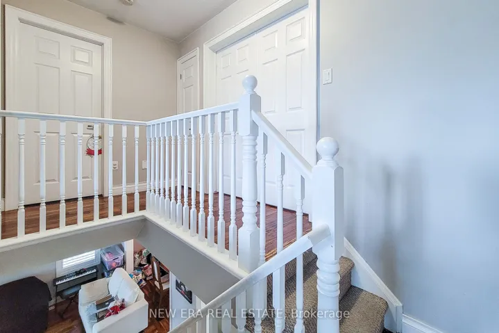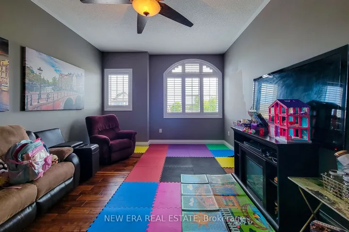 +"PublicRemarks": "Welcome to this spacious 2-storey detached home nestled in a quiet, family-friendly neighbourhood! Offering over 2,000 sq ft of comfortable living space, this home features a carpet-free main floor with a cozy living room complete with an electric fireplace, a separate dining room perfect for entertaining, and a bright eat-in kitchen with stainless steel appliances, tiled backsplash, ample cupboard space, and a walk-out to the back deck. The upper level boasts a large family room ideal for relaxation or play, convenient bedroom-level laundry, and three generously sized bedrooms. The primary suite includes a walk-in closet and private 3pc ensuite, while the 4pc main bath offers ensuite privilege to the other two bedrooms. The partially finished basement includes an additional bedroom, offering flexible space for guests, a home office, or recreation. Enjoy the fully fenced backyard with a deck and charming gazebo - perfect for summer gatherings. Located close to parks, Lake Ontario, the marina, and just a short drive to schools, the QEW, and all major amenities. A fantastic place to call home!"