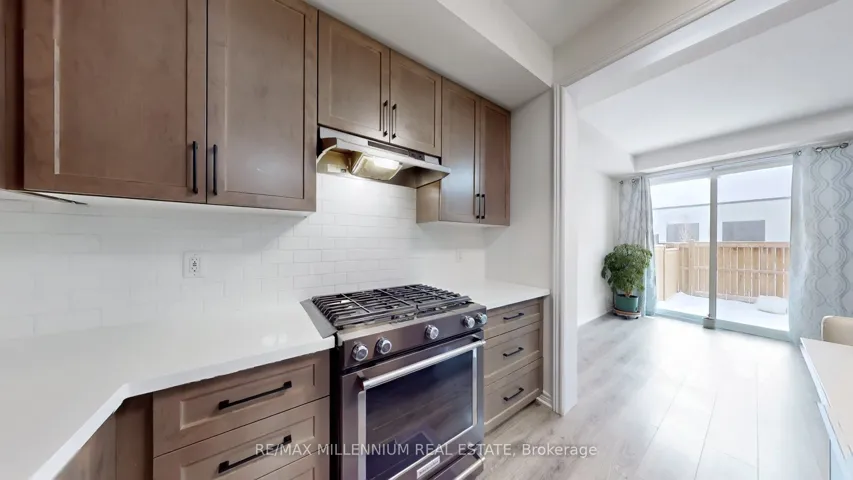 +"PublicRemarks": "Rarely offered, this 3-bedroom, 3-bathroom freehold townhome offers nearly 2,000 sq. ft. of contemporary living space with parking. Step into an elegant home featuring 9 ft ceilings in the living room, hardwood floors, and a gas fireplace. The modern S/S appliances, granite countertops, designer cabinetry, and a custom backsplash. The primary retreat impresses with a private balcony, custom walk-in closet, and a spa-like 5-piece ensuite with double sinks, glass shower, and soaker tub. Additional highlights include a second-floor laundry with utility sink, granite vanities, and a bright south-facing terrace perfect for relaxation. This desirable unit offers direct access to the community playground and is ideally located near subway, plazas, banks, restaurants, top-rated schools, and major highways."