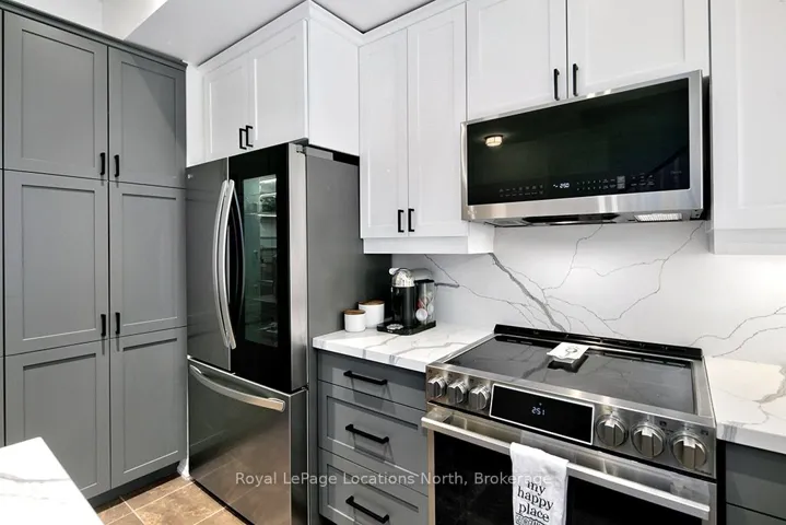 +"PublicRemarks": "This sun-filled end-unit villa in sought-after Lora Bay offers a refined yet comfortable living experience, thoughtfully updated for today's lifestyle. The main floor is designed for easy living and entertaining, featuring an open layout with hardwood flooring throughout. The updated kitchen showcases sleek new stainless appliances, stunning countertops, and a contemporary backsplash, flowing effortlessly into the dining area and inviting living space. A gas fireplace with stone surround anchors the living room, with direct access to a private stone patio framed by mature trees and greenery-ideal for relaxing or hosting outdoors. A powder room completes this level. Upstairs, two generously sized bedrooms each enjoy their own private ensuite, creating excellent separation and comfort for owners and guests alike. Convenient upper-level laundry and additional storage add to the home's practicality. The finished lower level expands the living space with a spacious recreation room suitable for movie nights, hobbies, or guest overflow, complemented by a full 3-piece bathroom. An attached double garage provides plenty of space for vehicles, storage, and outdoor equipment. Residents enjoy the exceptional Lora Bay lifestyle, with access to waterfront amenities, golf, walking trails, and the Clubhouse which includes a gym, lounge areas, and a restaurant. Just minutes to the ski hills and the vibrant communities of Thornbury and Meaford."