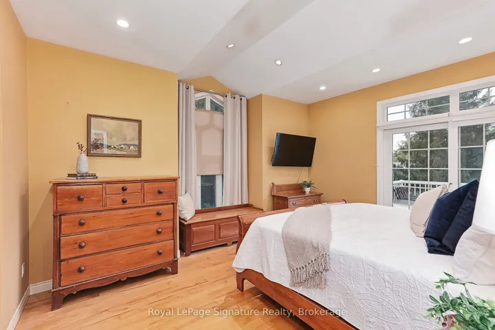 +"PublicRemarks": "Welcome to 180 Russell, an exceptional brick residence that blends privacy, elegance, and outstanding outdoor living. Set on a rolling, professionally landscaped lot, the property is framed by stone walkways, soldier stone detailing along the driveway, and a stamped concrete entry, creating striking curb appeal from the moment you arrive. Designed for year-round enjoyment, the backyard is a true retreat, featuring a tranquil waterfall, outdoor fireplace, expansive deck, covered patios, and a walk-out lower level-perfect for effortless entertaining and relaxed outdoor living. Inside, the main level offers a bright, open-concept layout where the kitchen, dining, and living areas flow seamlessly together. Large sliding doors extend the living space to a generous deck overlooking the private, serene yard. The primary suite is a private haven with his-and-hers closets and a spa-inspired ensuite with heated floors. A flexible office or den, a full bathroom, convenient laundry, and direct garage access complete the main floor. The fully finished lower level is ideal for hosting and extended family, featuring a spacious family room with gas fireplace, three additional bedrooms, a full bath, and a two-piece bath. Radiant in-floor heating ensures year-round comfort, while the thoughtfully designed second kitchen-equipped with a cooktop, sink, dishwasher, bar fridge, and beverage fridge-enhances both indoor and outdoor entertaining. With its own walk-outs, bedrooms, bathrooms, and kitchen, this level also offers excellent potential for a private in-law suite.Additional highlights include a covered front porch, a two-car garage with inside entry, beautifully curated landscaping, and a Wi-Fi-enabled smart irrigation system for easy lawn and garden maintenance. With its exceptional outdoor spaces, generous interior layout, and peaceful setting, 180 Russell delivers the perfect balance of comfort, functionality, and refined living."
