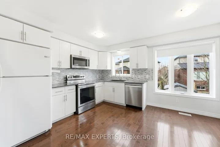 +"PublicRemarks": "Welcome to 412 Jewelwing Prvt. Recently built 2023 e Q Homes, in the desirable Pathways South community in Findlay Creek. This back-to-back townhome offers a thoughtfully designed living space which is perfect for those seeking both style and comfort. Step into a very spacious foyer on the first floor, with a door leading to the garage and a bonus versatile storage space under the stairs. The second floor features a bright kitchen, with natural light from oversized windows, enjoy the included kitchen SS/appliances and admire the open concept created by 9' ceilings on the second floor. This home features a balcony ideal for entertaining or relaxing with friends and family. The third floor features two sizeable bedrooms with plush carpet in the bedrooms for added comfort, the primary bedroom is a true retreat, featuring a large walk-in closet and ensuite that provides ample closet space and convenience. The secondary bedroom includes an oversized window for natural light and a separate full bathroom for use. You're also close to many parks,, schools, restaurants, recreation centres, transit, Ottawa airport and other amenities. Don't miss the opportunity of a modern living, book a showing today!"