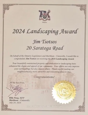 +"UnparsedAddress": "20 Saratoga Road, Markham, ON L3P 7J2"