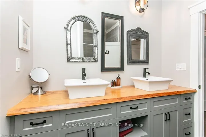 +"PublicRemarks": "Spectacular Custom-Built Bungalow with Walk-out Basement, Triple Car Garage & Detached 2-Storey Garage & Shop on Two Acres-just 35-45 min from Waterloo! Nestled in an exclusive enclave of executive homes in Moorefield, this property offers a peaceful country setting with easy city access. Built like no other, it showcases structurally superior ICF (insulated concrete form) construction & a lifetime metal roof-the same quality extends to the det garage. Inside, the open-concept layout features exposed timber-frame details, soaring vaulted ceilings & 2 glass garage doors that open onto a 3-season porch.The kitchen, dining & living area impress w/ a stone f/p, concrete counters, oversized island & fantastic walk-in pantry w/ floor-to-ceiling storage. At its heart: an 8-burner Wolf gas stove, double ovens & upgraded range hood-over $40,000 in luxury appliances! Entertain year-round w/ the screened porch, complete w/ outdoor kitchen, brick hearth & fume hood for your bbq. The main floor also boasts a stunning primary suite w/ walk-in closet, spacious dressing rm & spa-inspired ensuite. A 2nd bedroom, currently an office, offers lovely treed views. A stylish mudrm, laundry rm & powder rm w/ live-edge barn door complete the main level. The fin w/o basement features heated floors, 2 bedrooms, 4-pc bath & expansive rec spaces-perfect for family gatherings or games night. 2 more w/o garage doors lead to the backyard & patio. For hobbyists, the 3-car gar is wired for an EV, while the sep insulated 2 storey wrkshp w/ electrical & wood stove provides endless options for projects, vehicles or gym. The nearly 2-acre property incl a pool-sized lot, new tiered deck, firepit area, treehouse & almost an acre of forest w/ a creek running through it. Your own private retreat!"