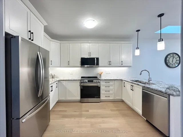 +"PublicRemarks": "Welcome to 33 Athabaska Drive, nestled in Belleville's beautiful Riverstone neighbourhood, conveniently located just North of the 401. This thoughtfully designed 2-bedroom, 2-bathroom bungalow town-home offers the perfect blend of quality craftsmanship and low-maintenance living. Walking in you will find the cozy living area with easy access to the spacious kitchen complete with pantry, stainless steel appliances and beautiful granite countertops. Just off the kitchen is the dining area and access to laundry, private interlock courtyard area and attached one car garage. This home is finished with a beautiful primary suite complete with 11ft ceiling, en-suite bathroom and walk-in closet. A secondary bedroom with convenient cheater access to the main bathroom as well as a large unspoiled basement with basement bathroom rough-in."